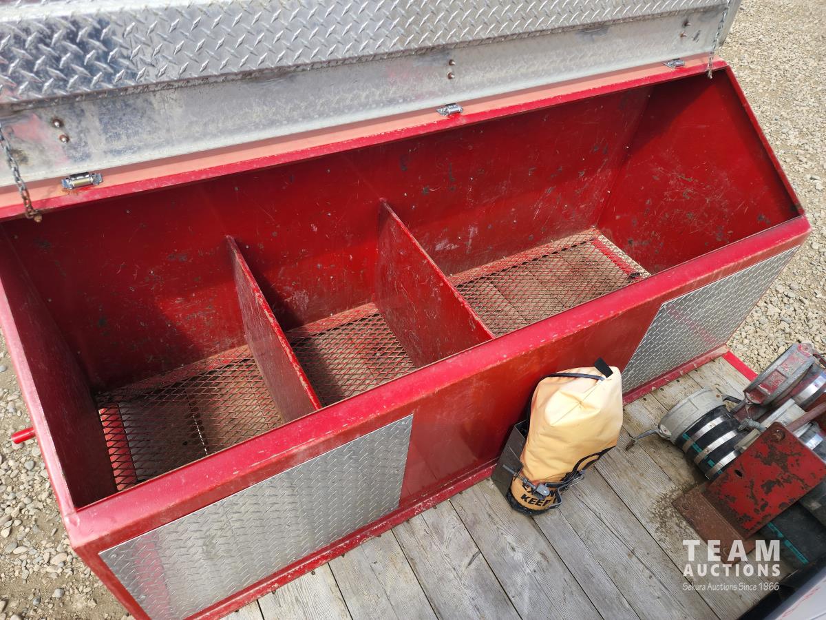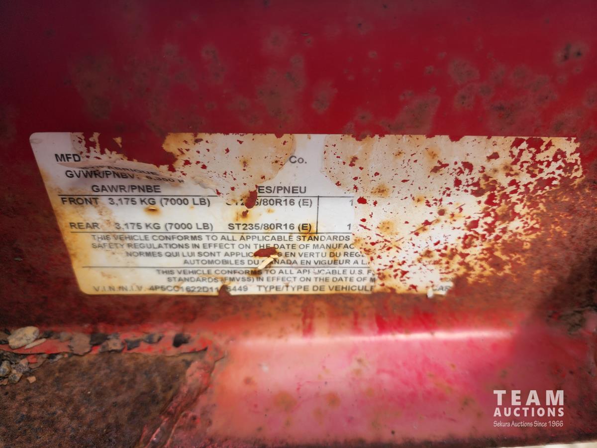 (2) 7,000 lb axles, 80 inch wide, torflex suspension, job box, (4) 6 inch hoses, 235/80R16 tires on aluminum rims