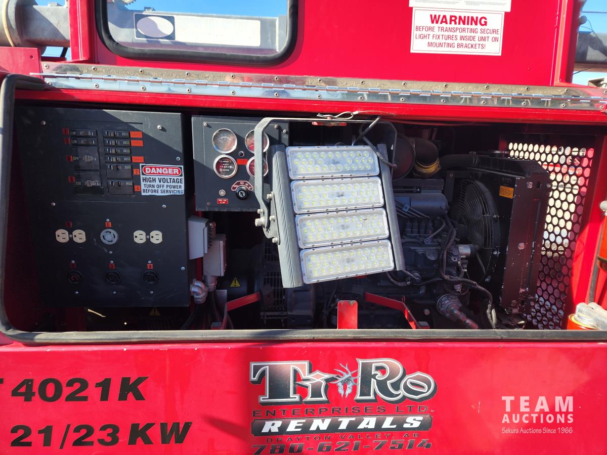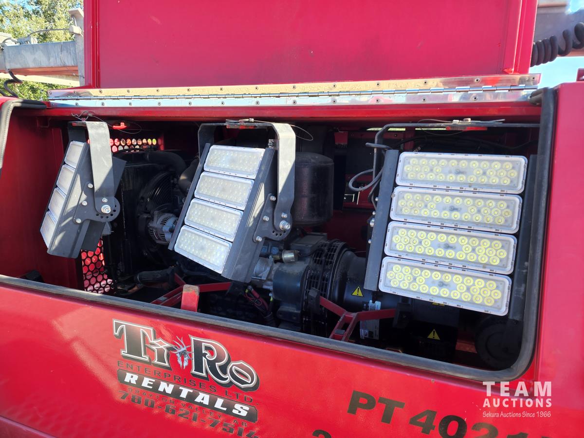 80 inch wide, torflex suspension, Kubota engine, 1430L fuel tank, 235/80R16 tires on aluminum rims, lift 30 ft high, three phase generator, (4) LED lights, 110/220 single and 3 phase power outlets
