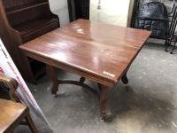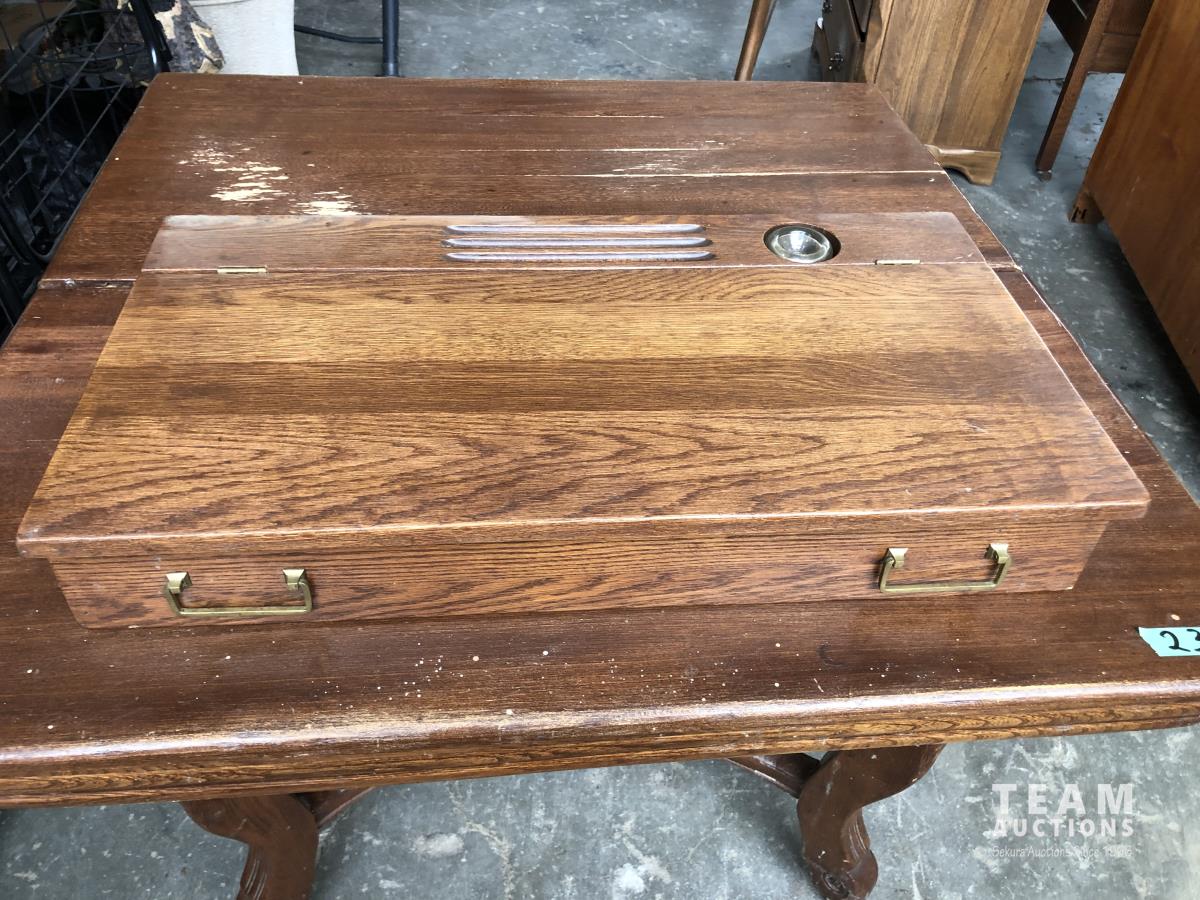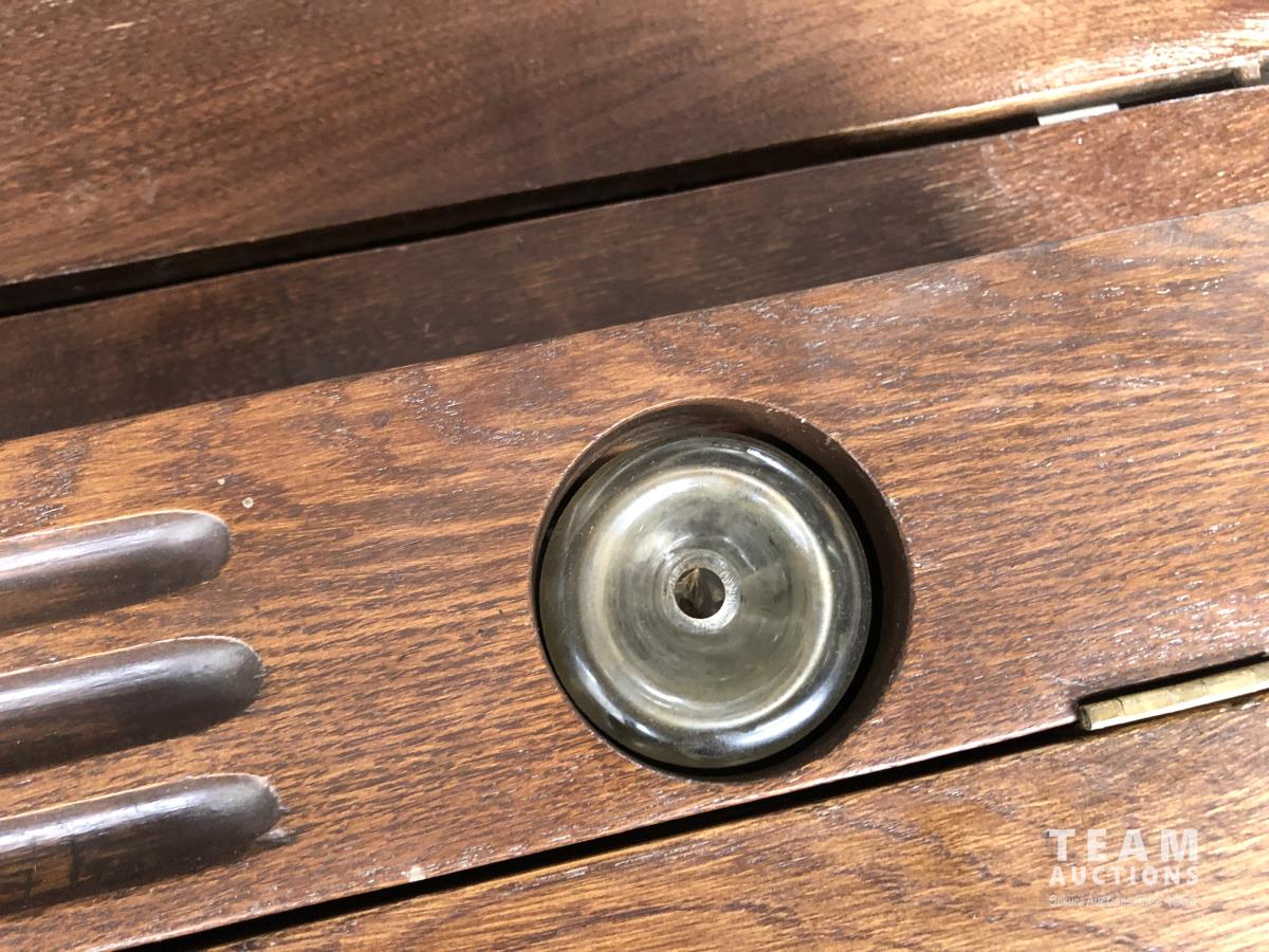 109 Antique Cabinet w/ Slide Out Desk w/ Inkwell & Antique Table