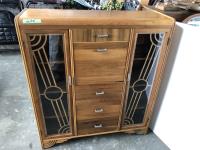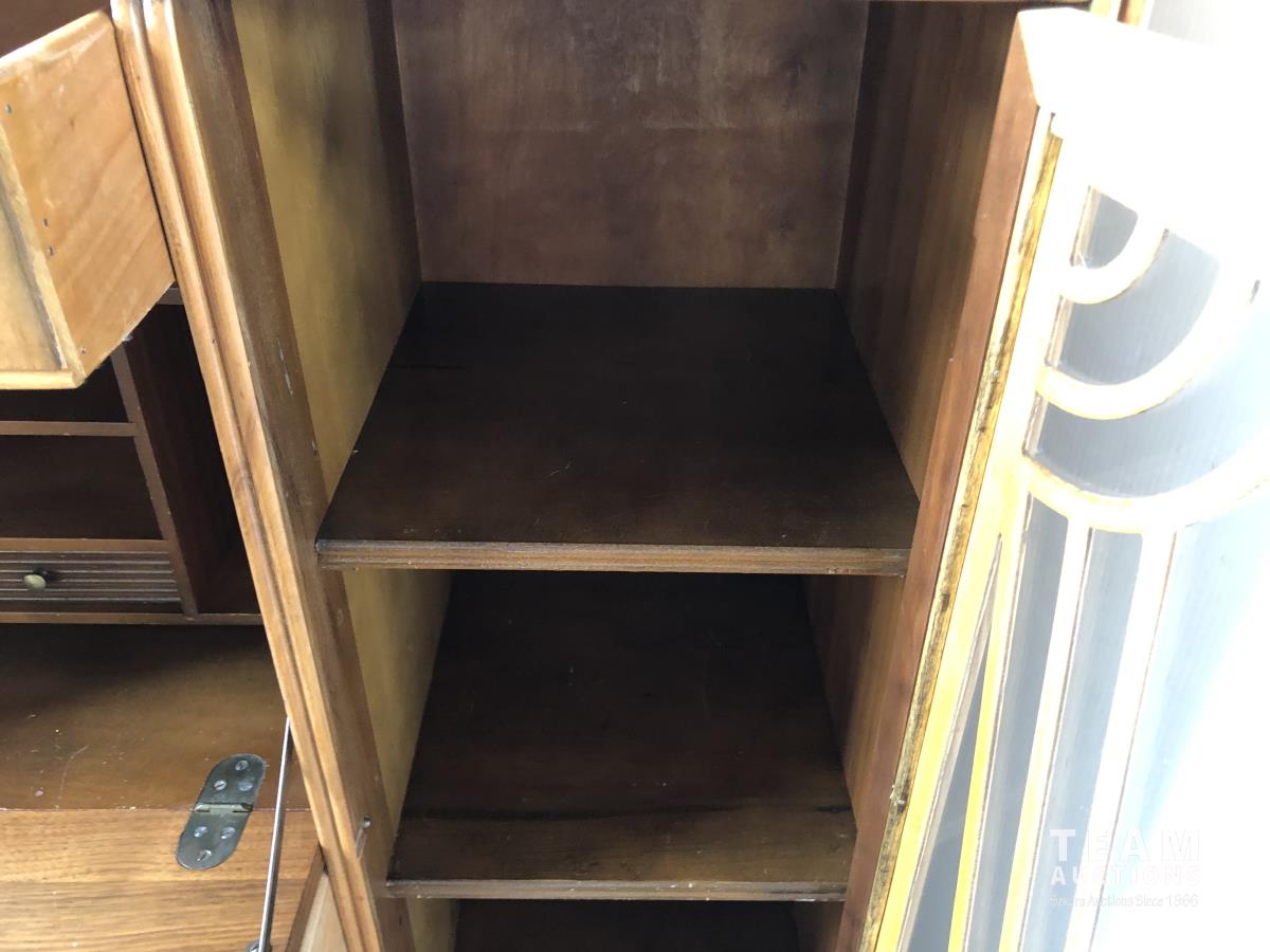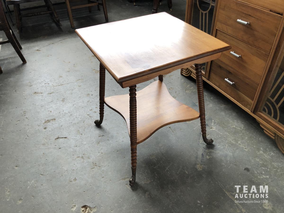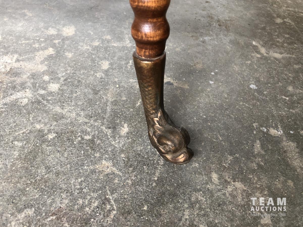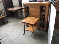 110 Antique Side Table W/ Brass feet & Antique Cabinet W/ Glass Doors