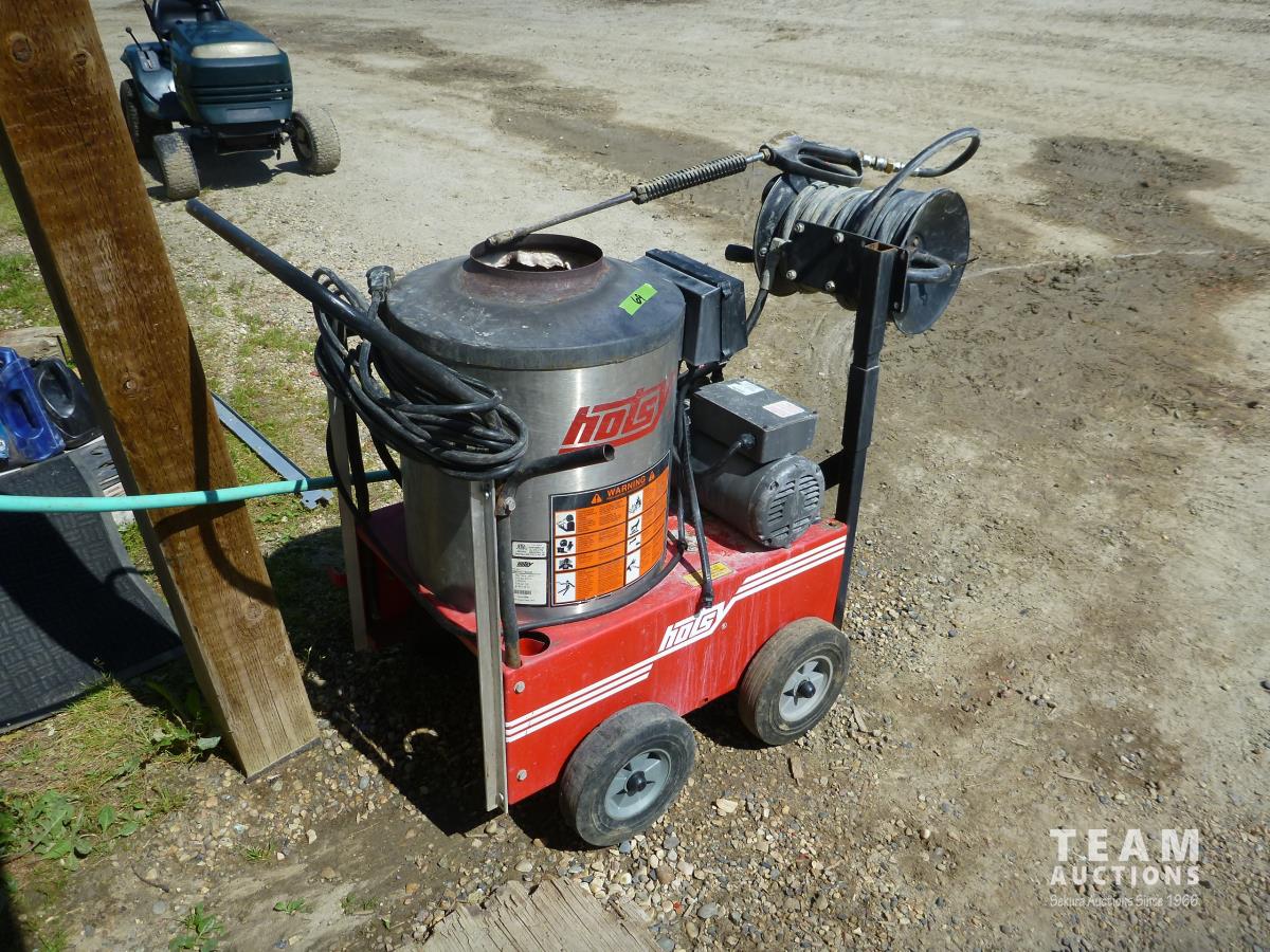 2 HP electric motor, 2.1 GPM, 1500 PSI, max temp 225 F, hose reel, hose & wand