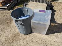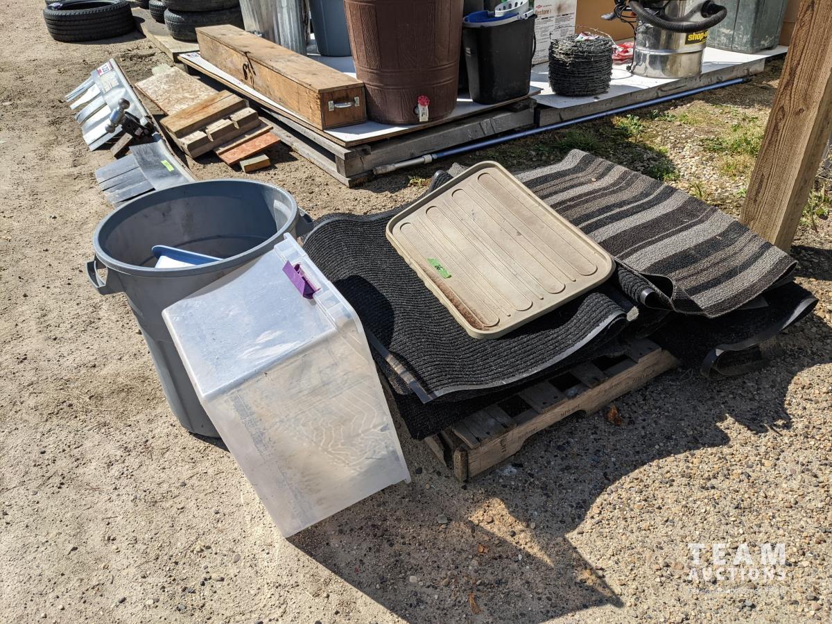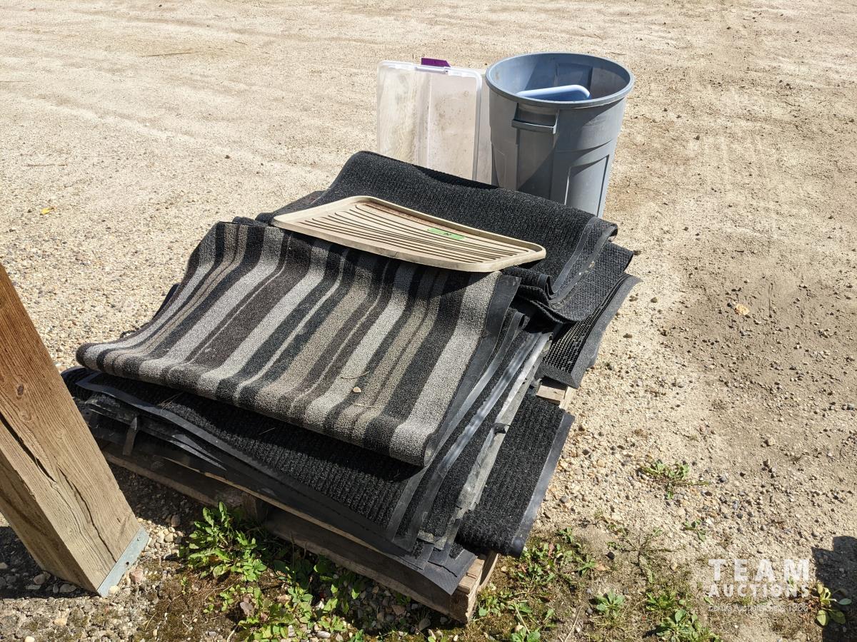 237 Floor Mats, Tote Bin & (2) Poly Garbage Cans