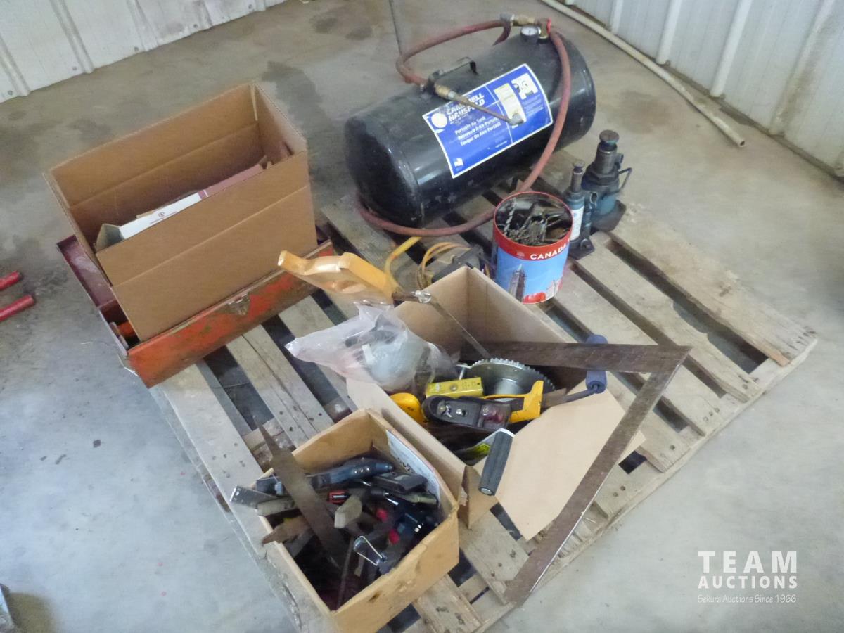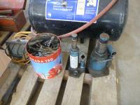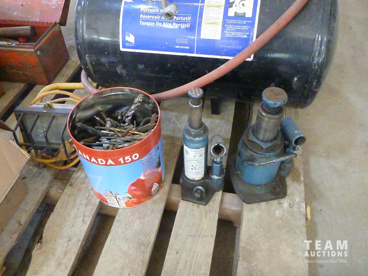 portable air tank, 2 ton jack, 12 ton jack, rivetors, squares, files, draw knife