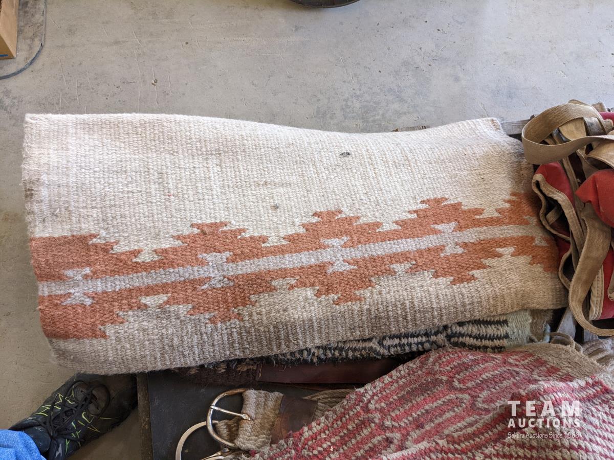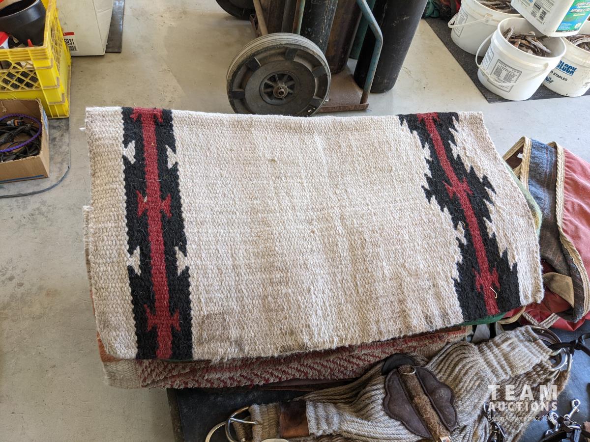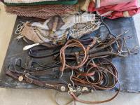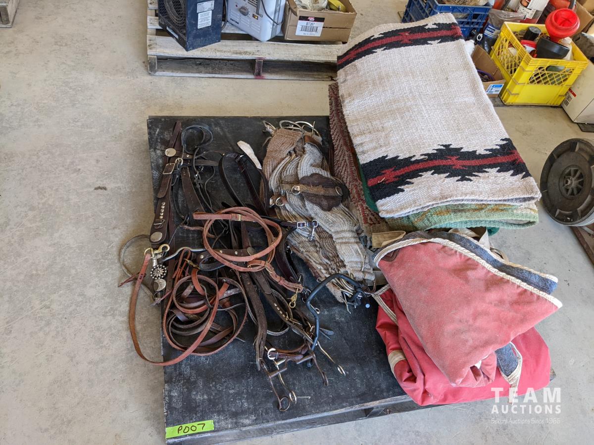 (7) Cinches, (4) bridles, (2) horse blankets, (8) Saddle pads