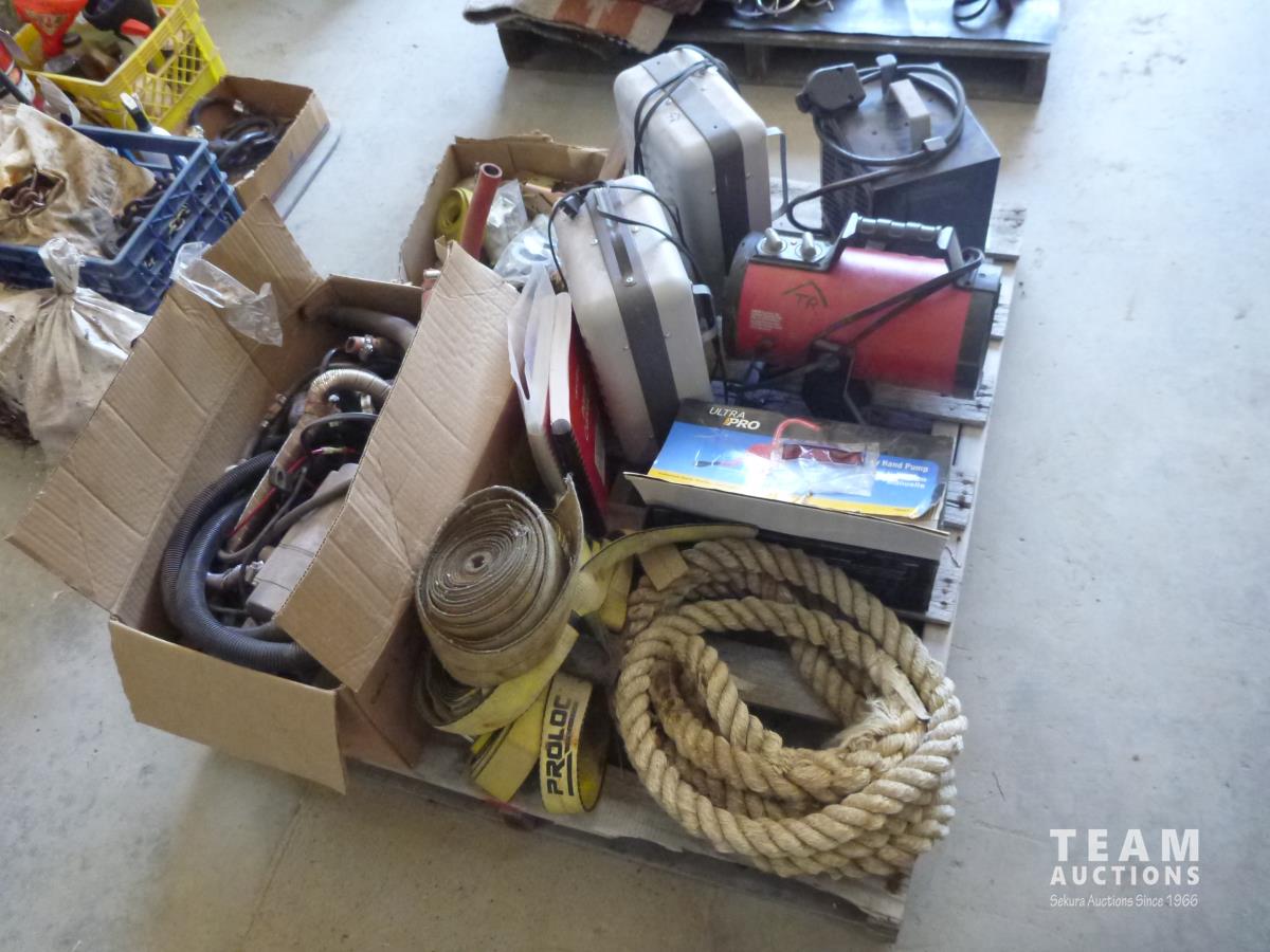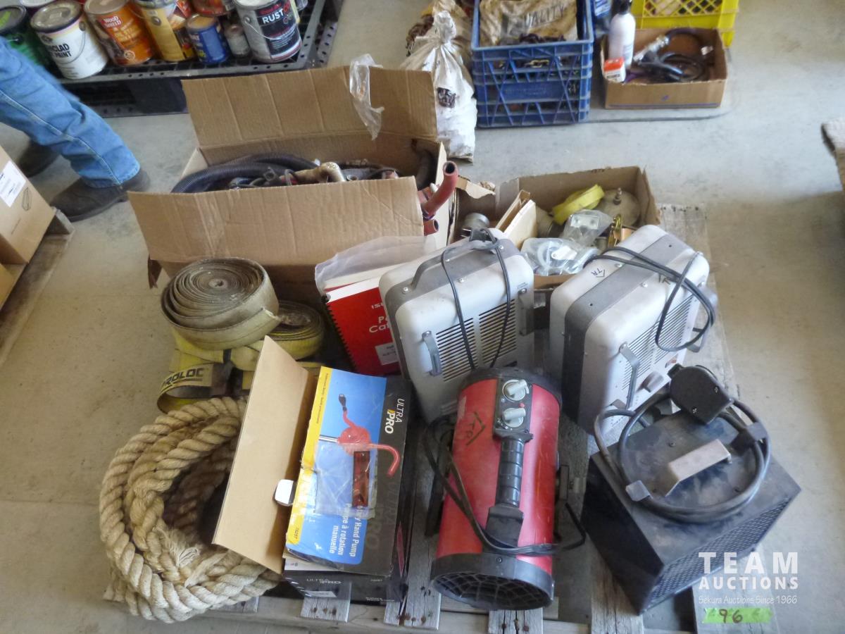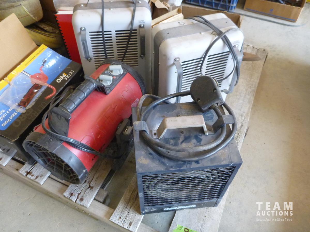 (4) electric heaters, barrel pump, diesel engine heater, rope, straps