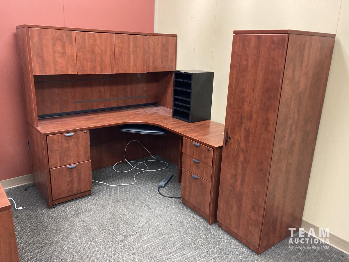 Desk approximately 24 inch x 66 inch x 65-1/2 inch, side cabinet is 24 inch x 18 inch x 65-1/2 inch