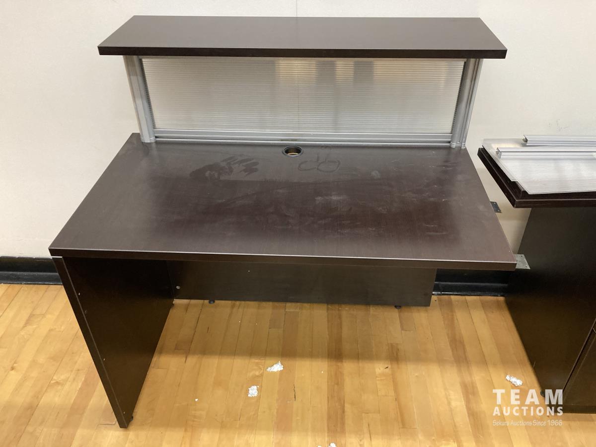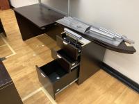 Desk 42 inch x 42 inch x 29-1/2 inch, 23-1/2 inch x 42 inch x 43 inch and 23-1/2 inch x 42 inch x 29-1/2 inch, drawers 22 inch x 15-1/2 inch x 28-1/2 inch