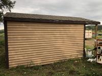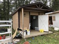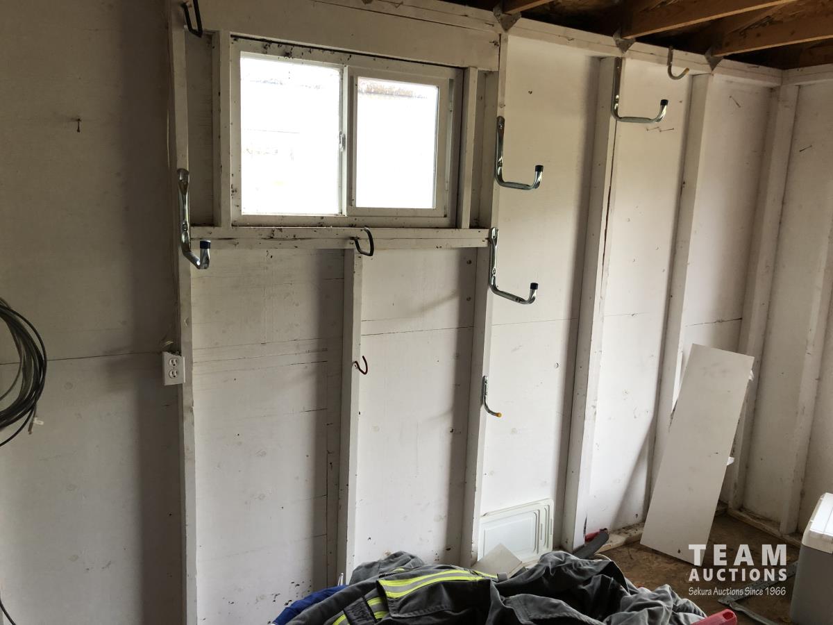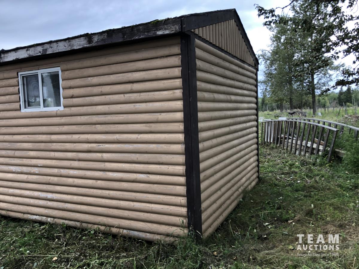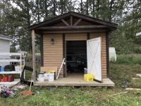 C/w 4 ft deck, 11 ft high, shelving, window, wired, shingles