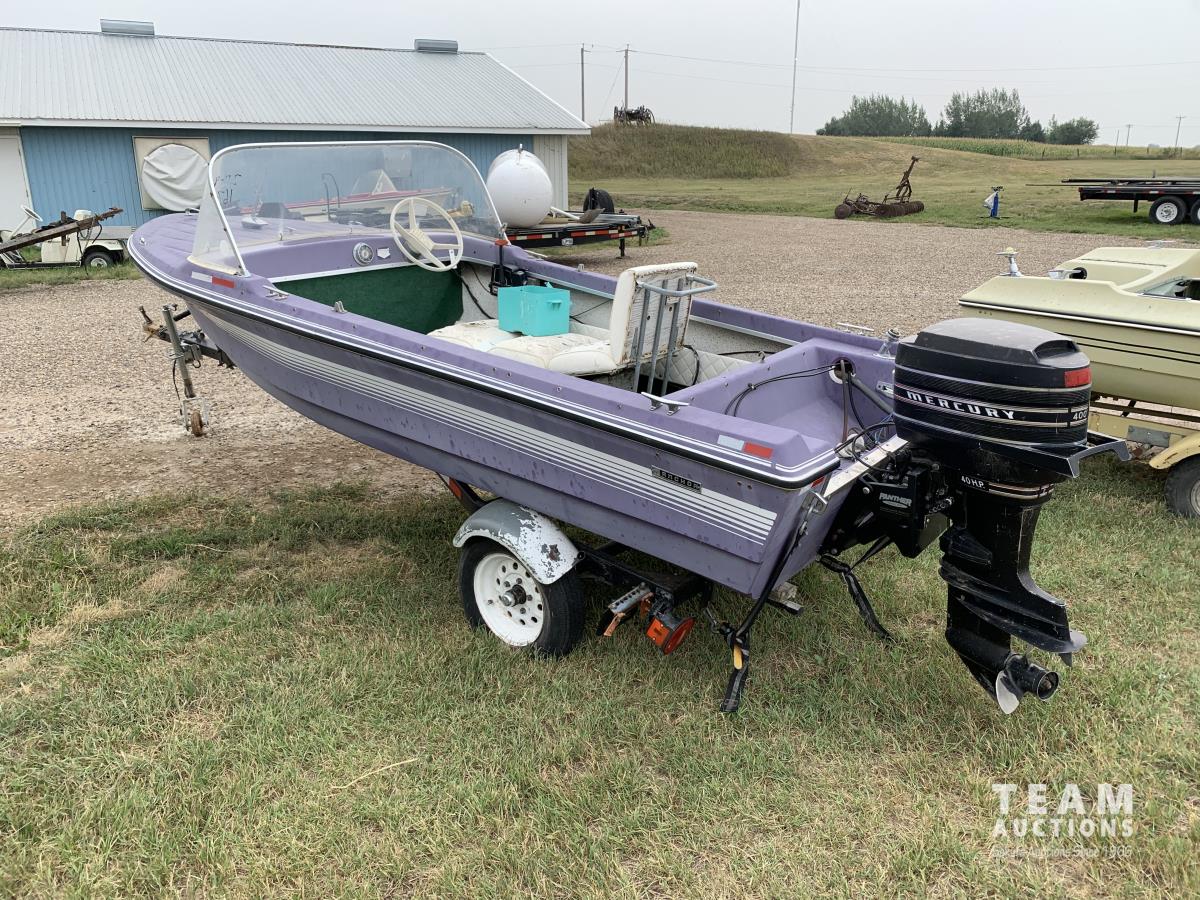 82 14 Ft Fiberglass Boat w/ S/A Trailer