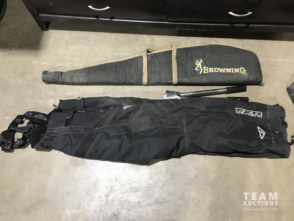6 drawer dresser, 30 inch x22 inch porcelain sink, (3) pairs of coveralls, (1) snowsuit), (9) cans of window and door foam, (4) lumber lock, tool bag, gun case and dehorners.