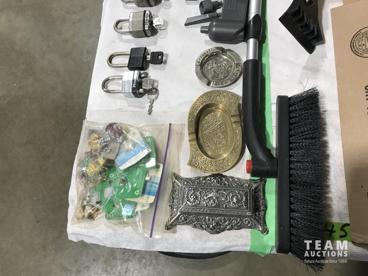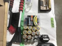 Window scrappers, locks, ring box, ash trays, miscellaneous batteries & super charger for dry cell batteries, napkins
