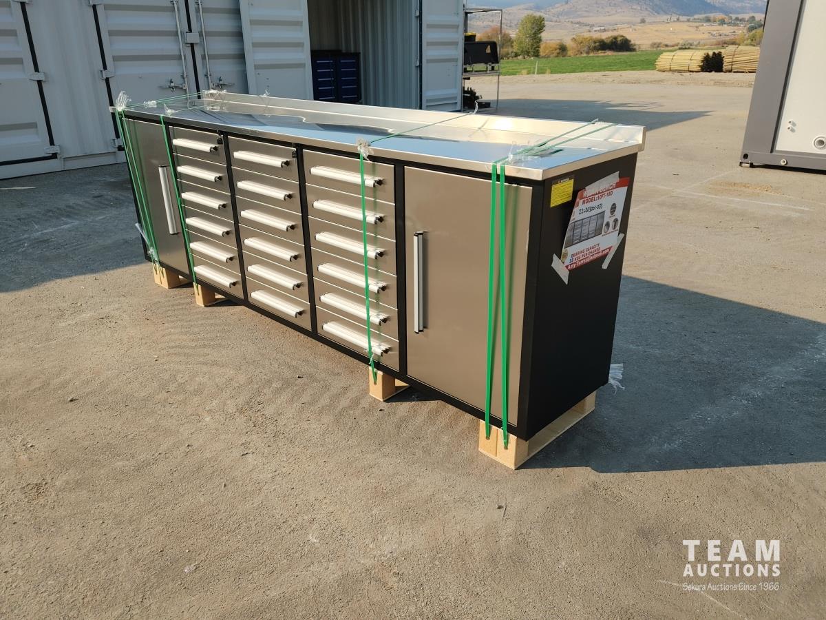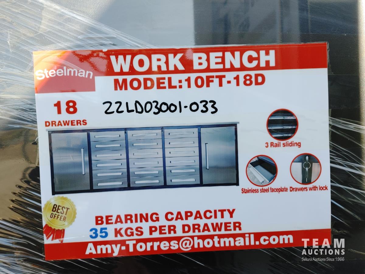 195 Steelman 10FT-18D 10 Ft SS Garage Cabinet Workbench (Unused)