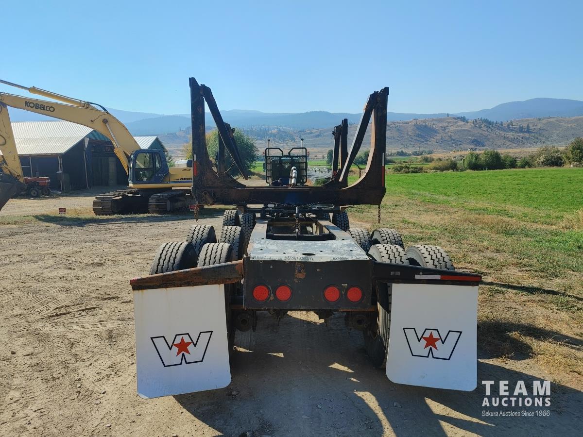 W/ bunk/bolster and cab guard, walking beam suspension, reach is apx 8 ft extendable, scales, 11R22.5 tires.
