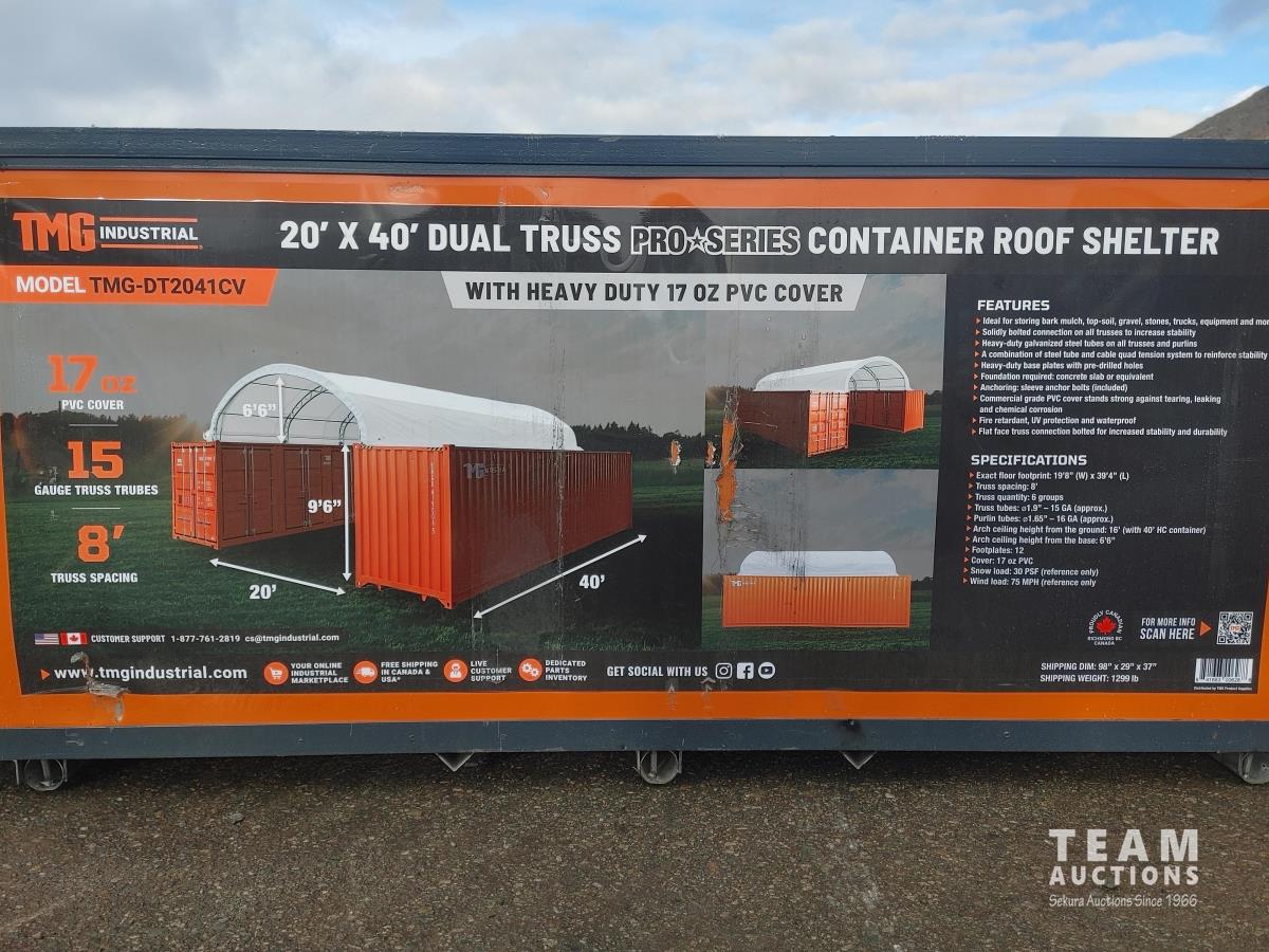 240 TMG Industrial DT2041CV 20 Ft X 40 Ft Dual Truss Container Shelter (Unused)