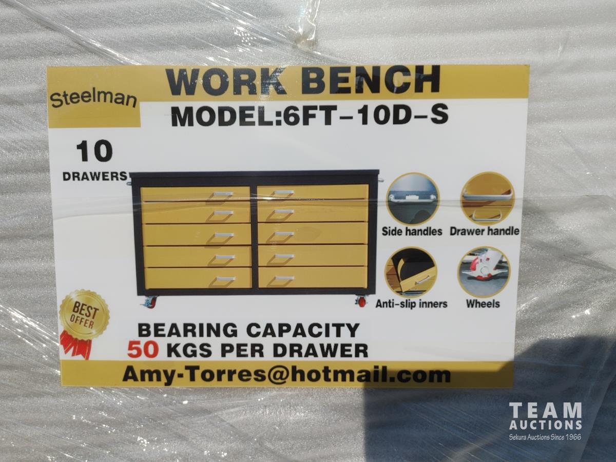 183 Steelman 6 Ft Garage Cabinet Workbench with 10 Drawers (Unused)