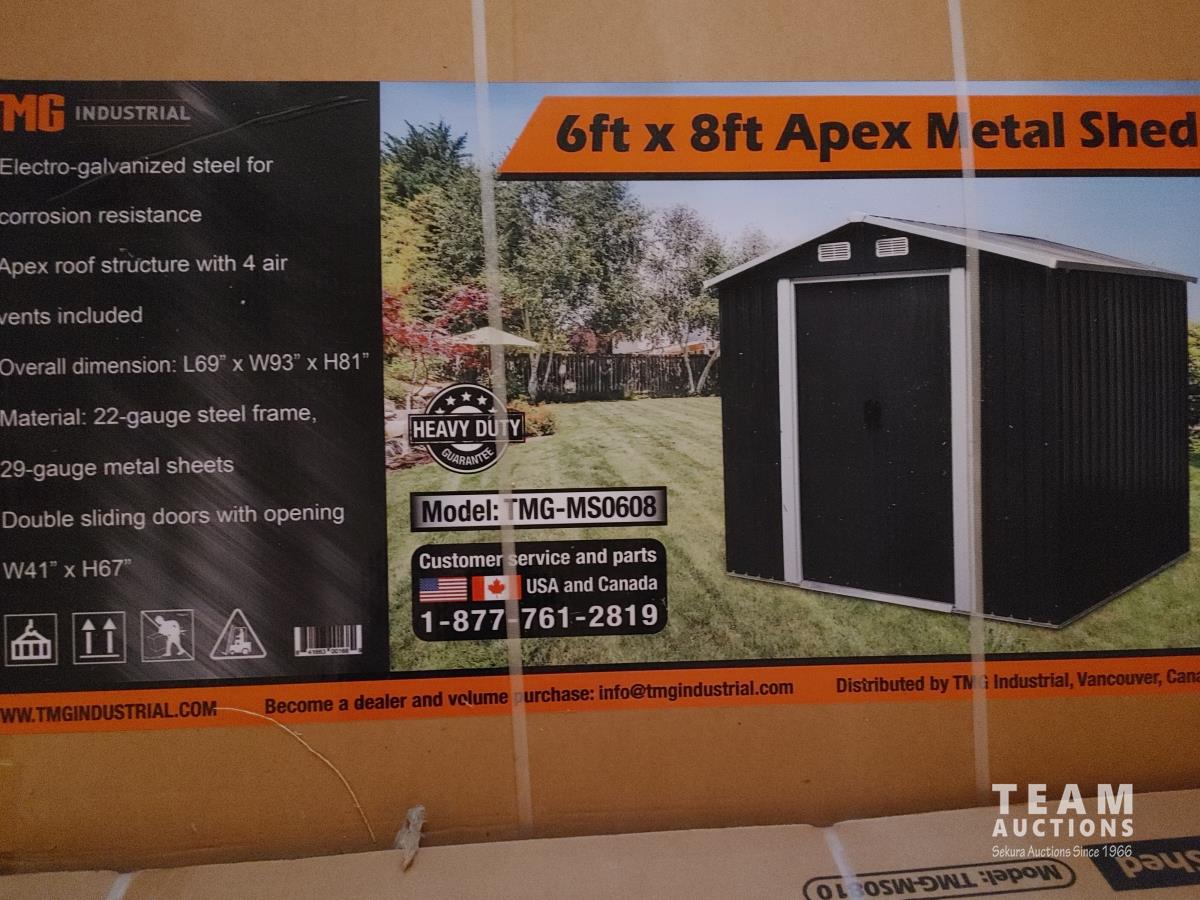 232 TMG Industrial MS0608 6 Ft X 8 Ft Galvanized Apex Roof Metal Shed (Unused)