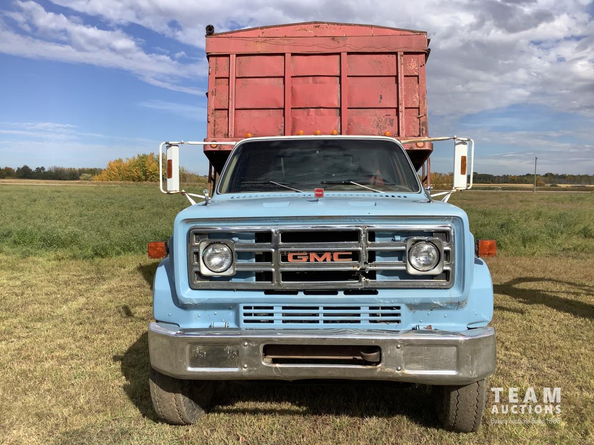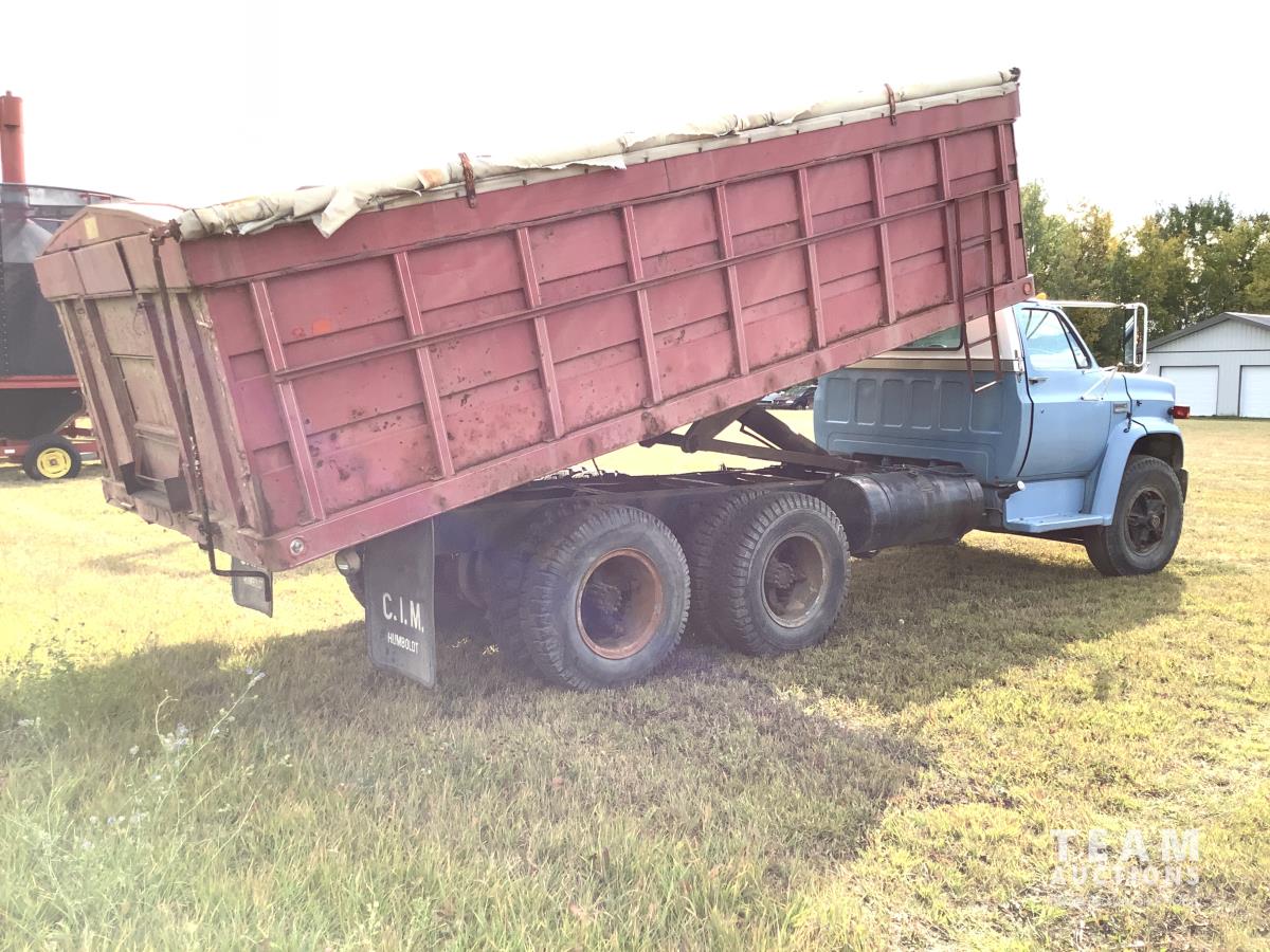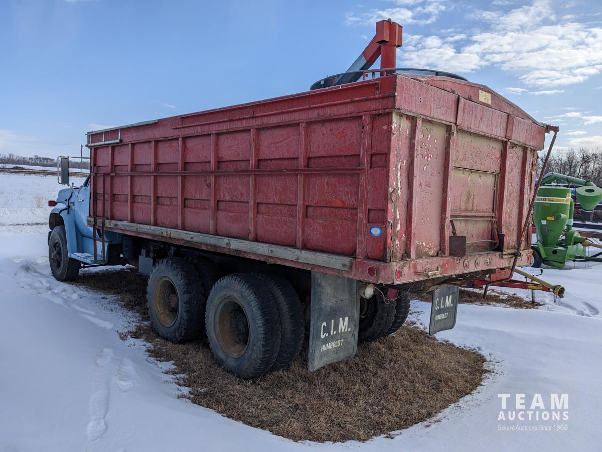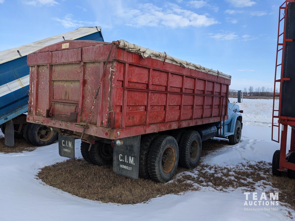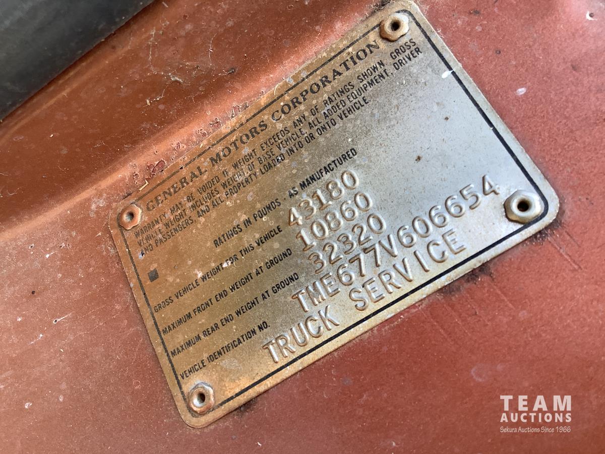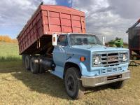 Gmc 427 cu in V8 355 HP gas engine, 5 & 4 transmission, 10,860 lb front axle, 32,320 lb rear axles, with extra rear diff parts, 18 ft box, hoist, hydraulic brakes, 9.00-20 tires