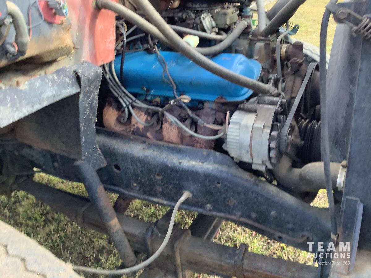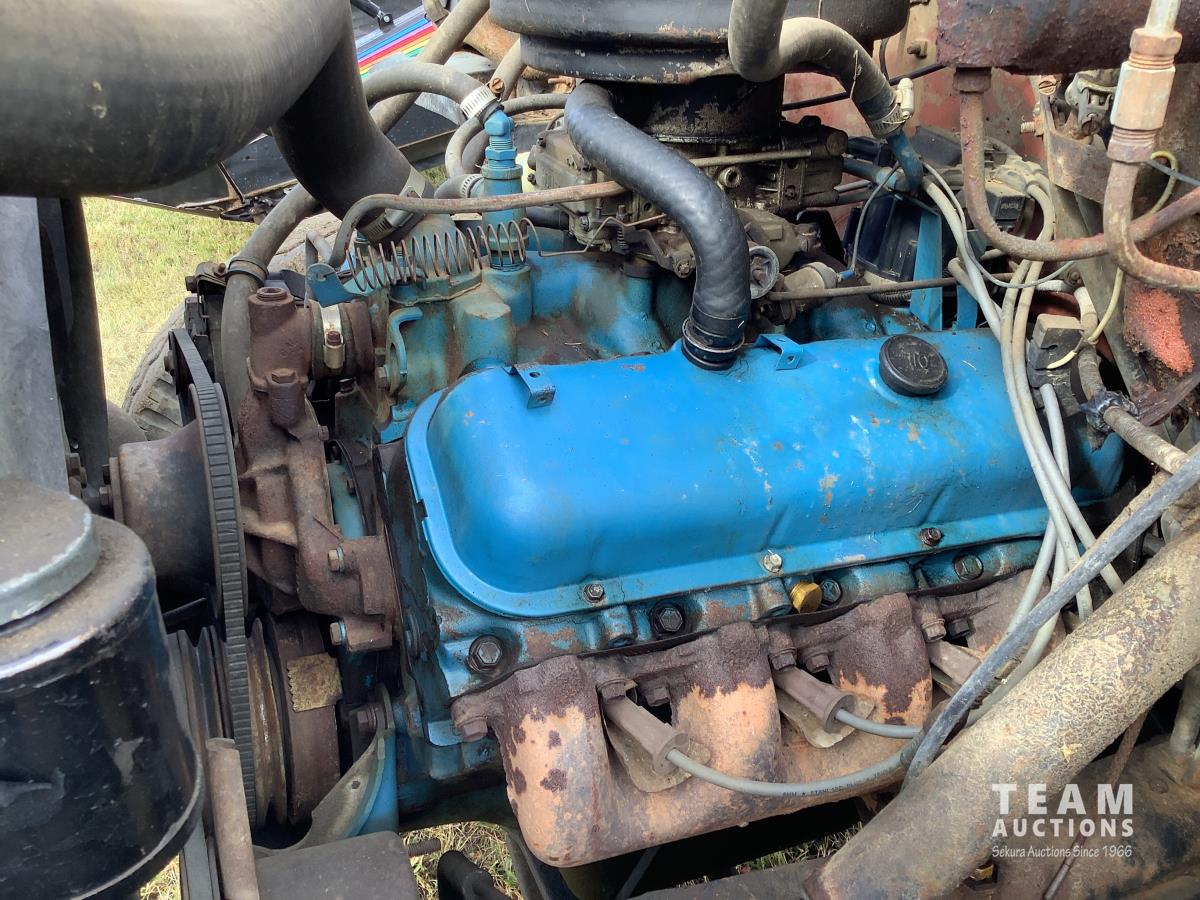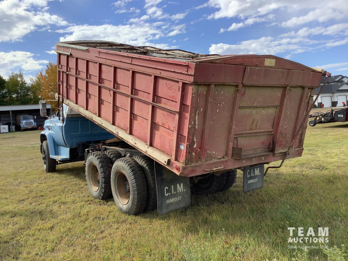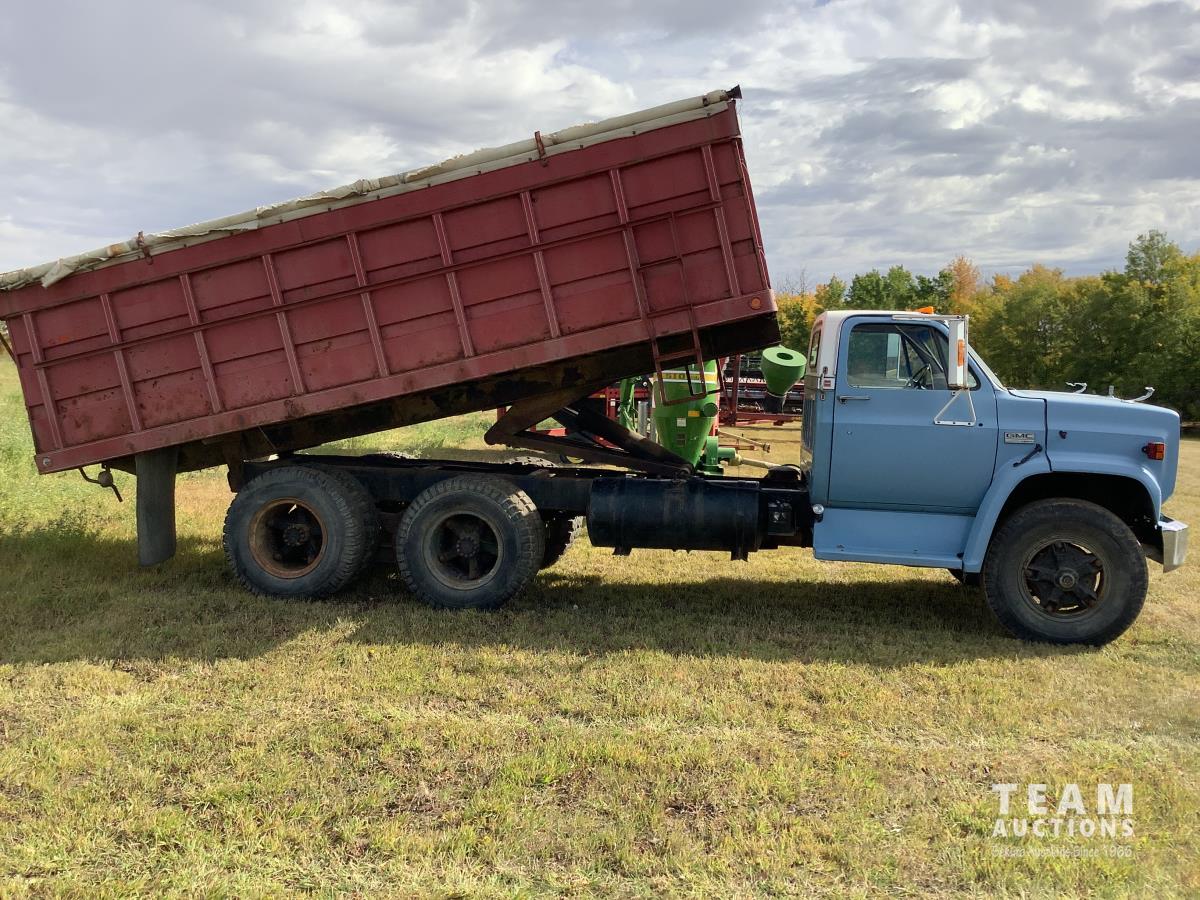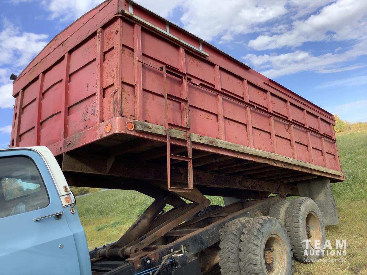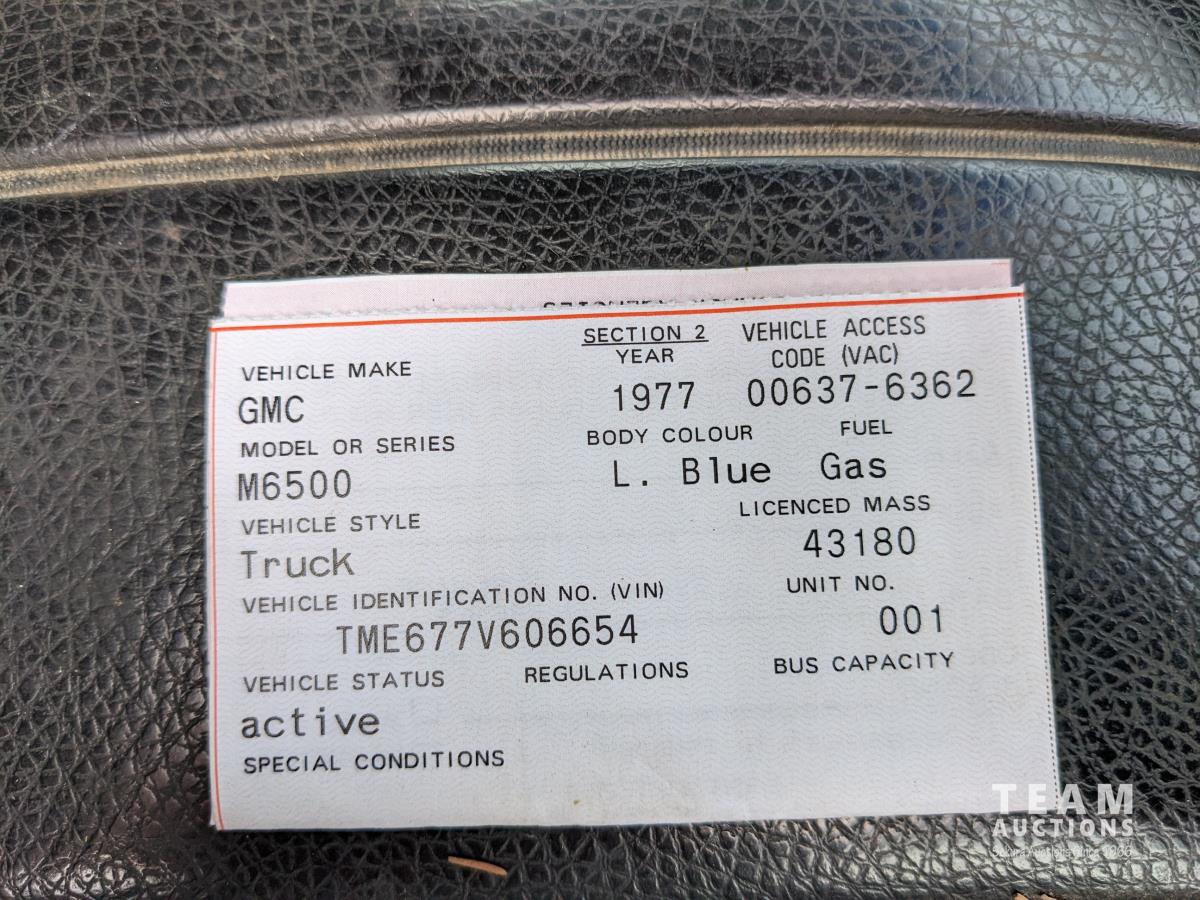 Gmc 427 cu in V8 355 HP gas engine, 5 & 4 transmission, 10,860 lb front axle, 32,320 lb rear axles, with extra rear diff parts, 18 ft box, hoist, hydraulic brakes, 9.00-20 tires