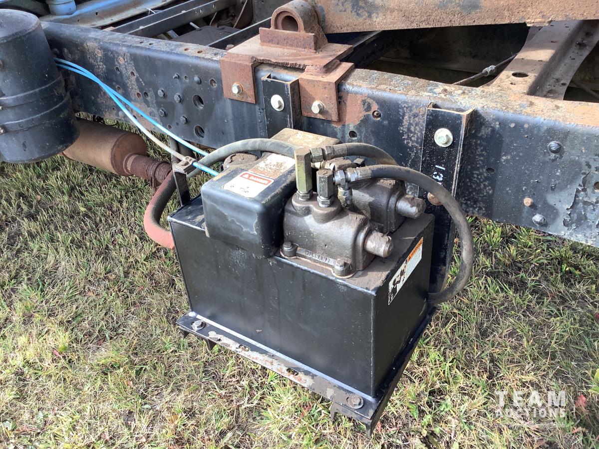Truck starts and runs, the engine was rebuilt not long ago, truck needs brake work, hoist works and is not registered at this time. There is a problem with one rear axle the nut cannot be removed but the truck comes with both complete rear axles and suspension just missing one brake assembly.