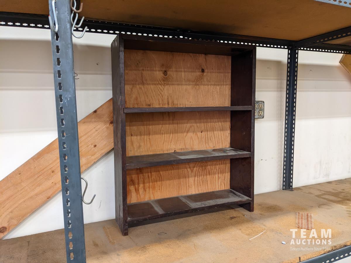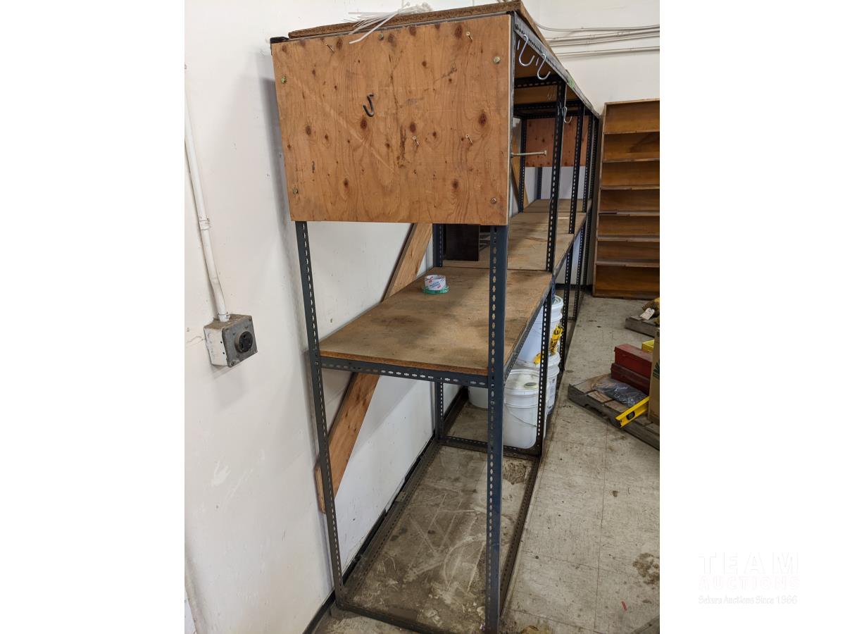 Metal frame, wood shelves, 24 inch deep X 76 inch high