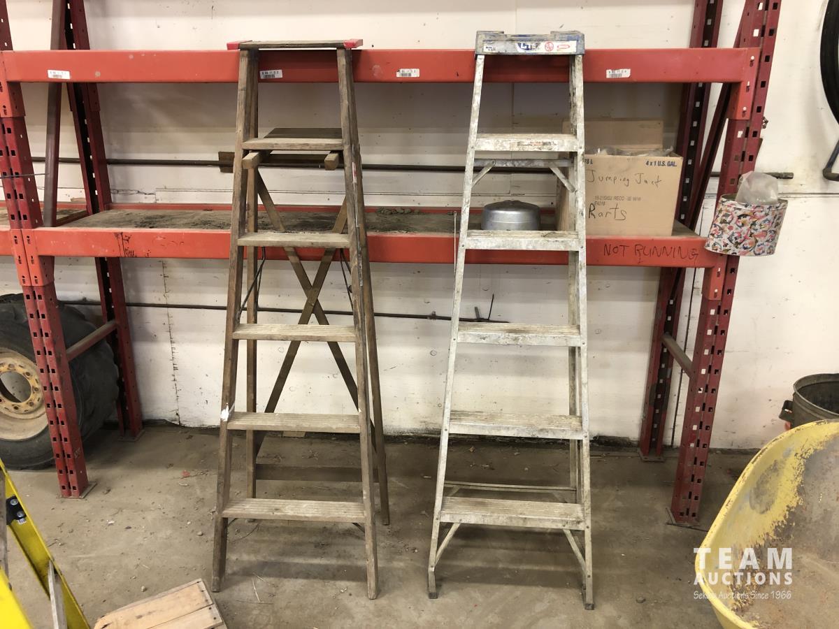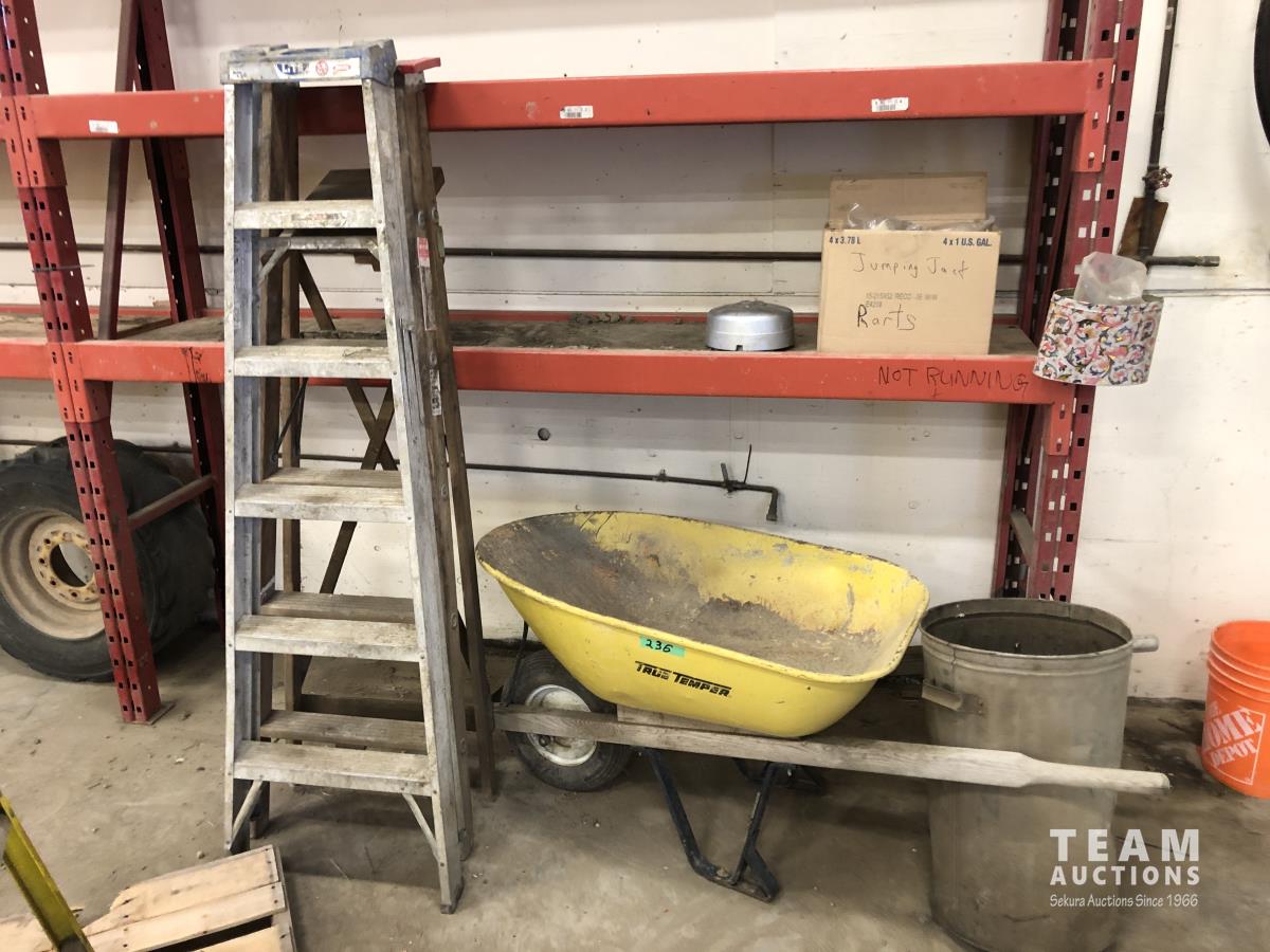 68 (2) Step Ladders, Wheelbarrow & Metal Garbage Can