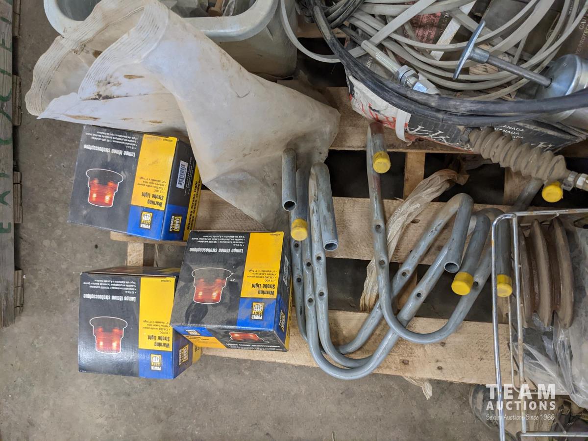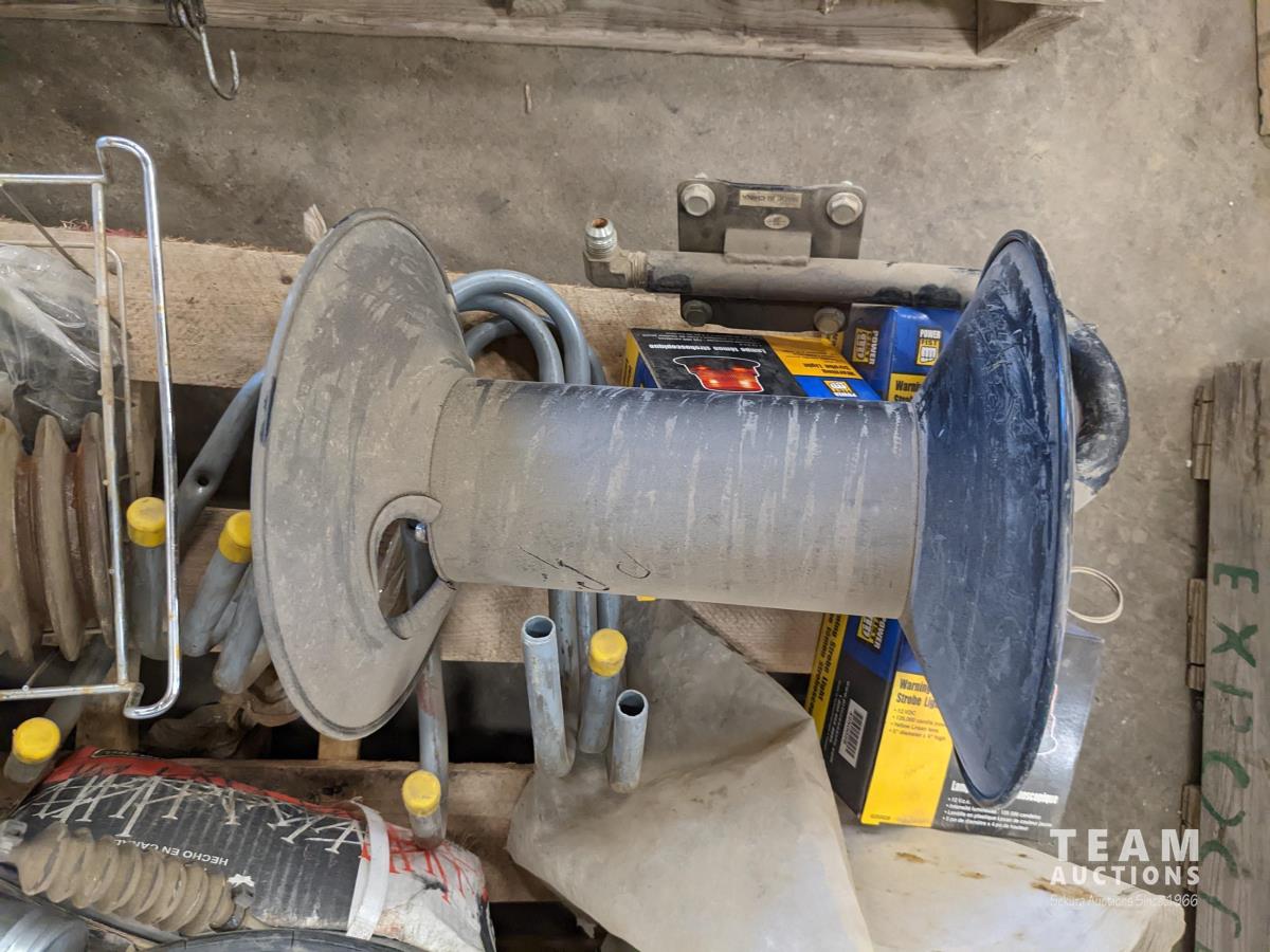 (3) Amber beacons, miscellaneous conduit fittings, hose reel, (2) screw jacks, pintle hitch, (2) receiver hitches