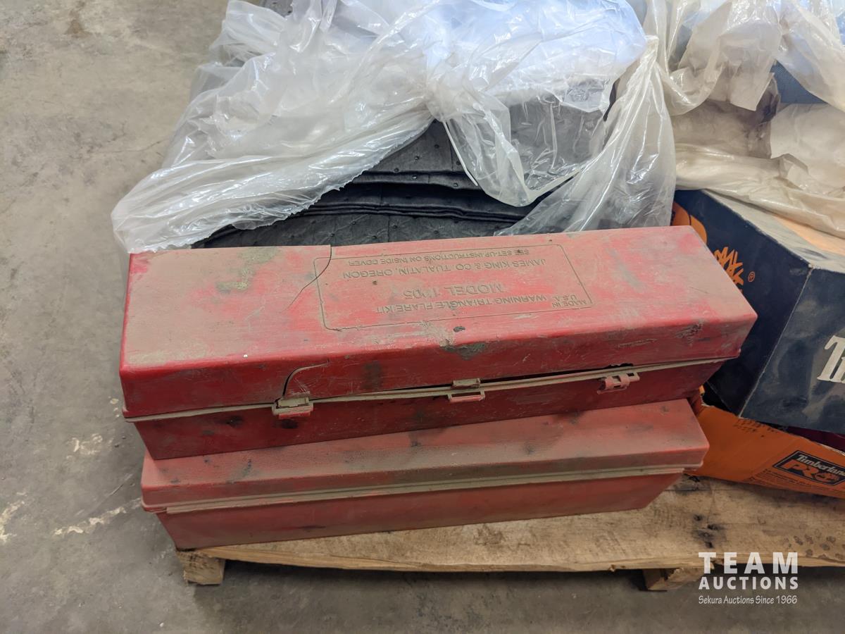 (2) truck triangle safety kits, first aid kit, spill pads, detailing supplies