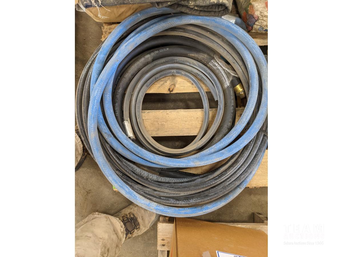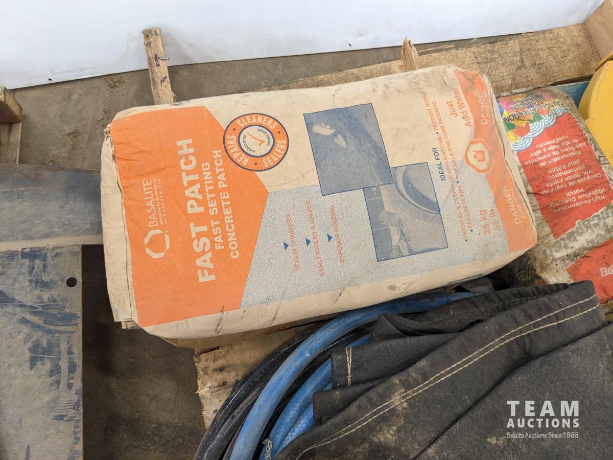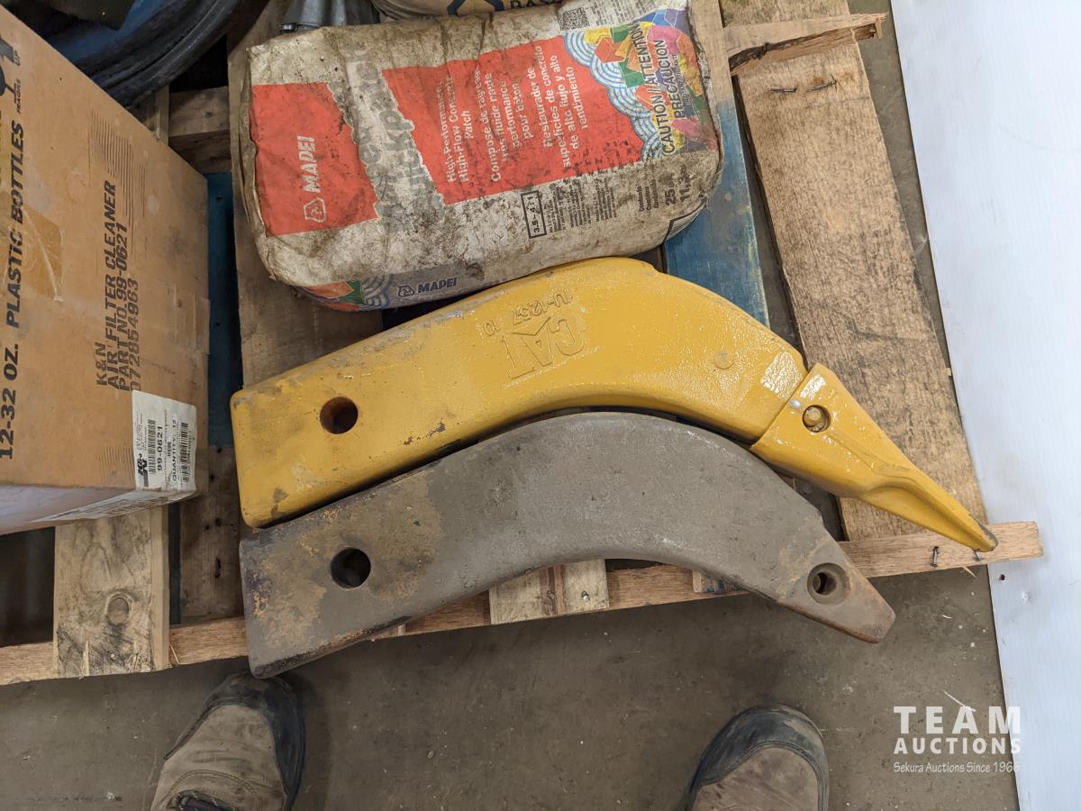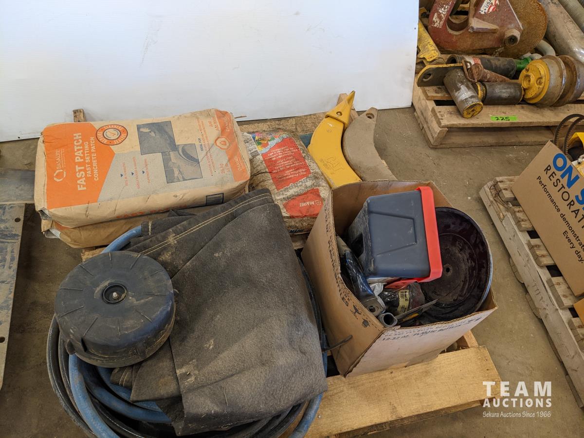 Hose, (2) fast patch concrete, (2) ripper teeth, miscellaneous items