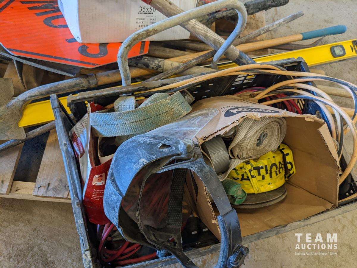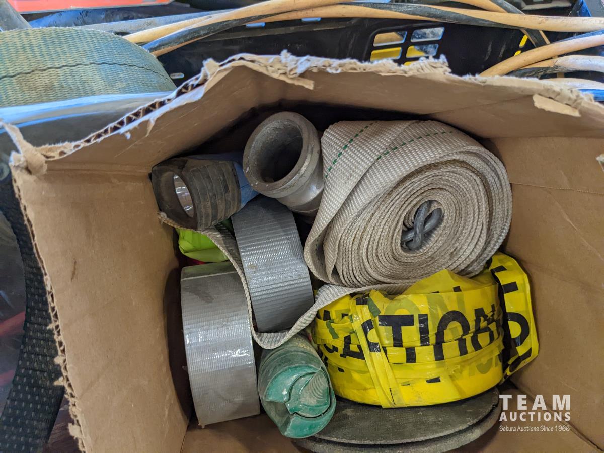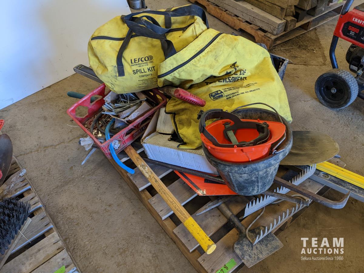 Spill kits, miscellaneous hardware, levels, straps, hand tools, tape, hard hat