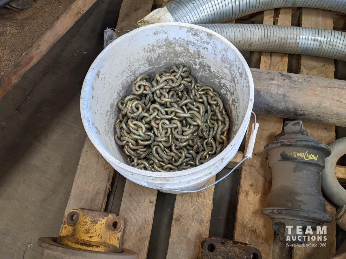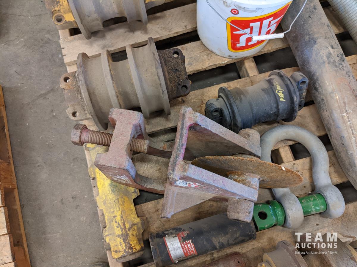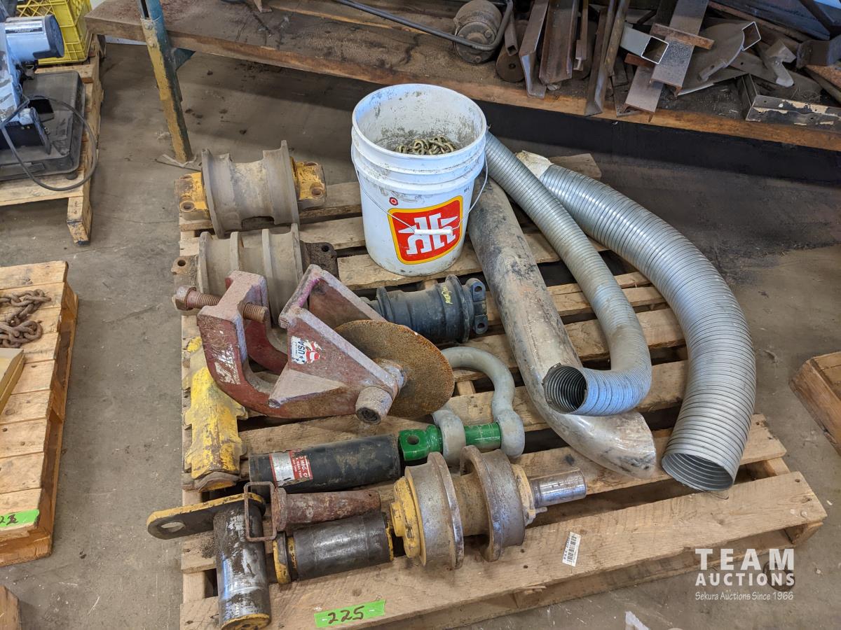 Dozer rollers and idlers, large shackle, flex pipe, qty of transport chain, ashalt cutter attachment