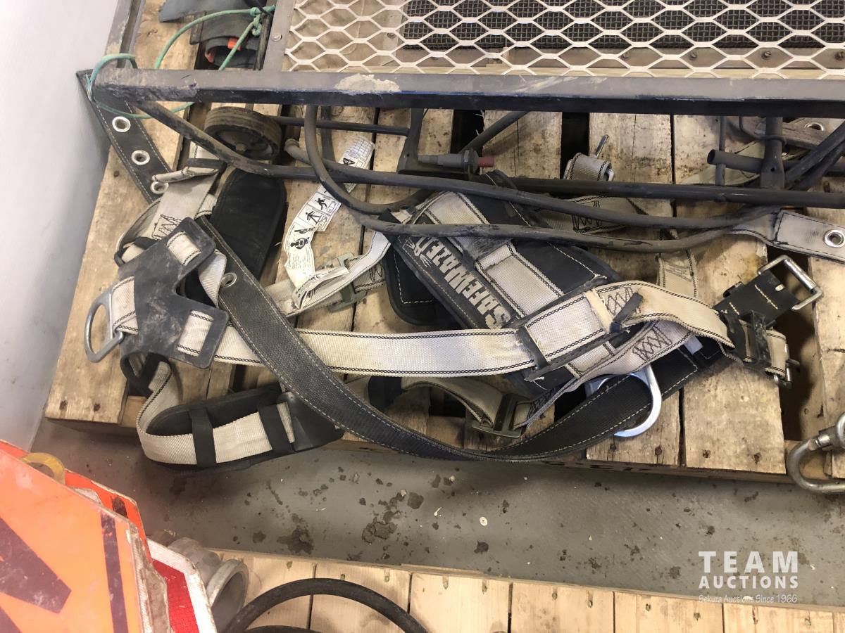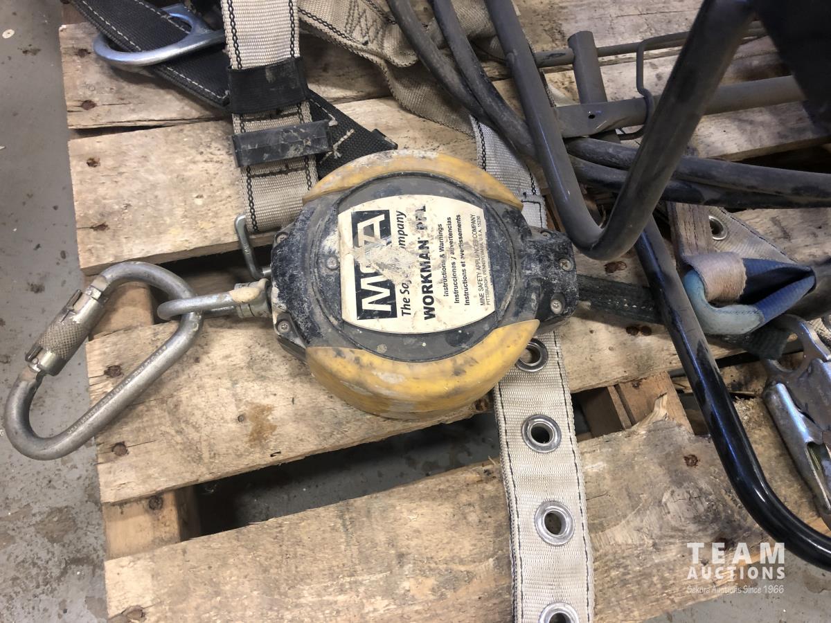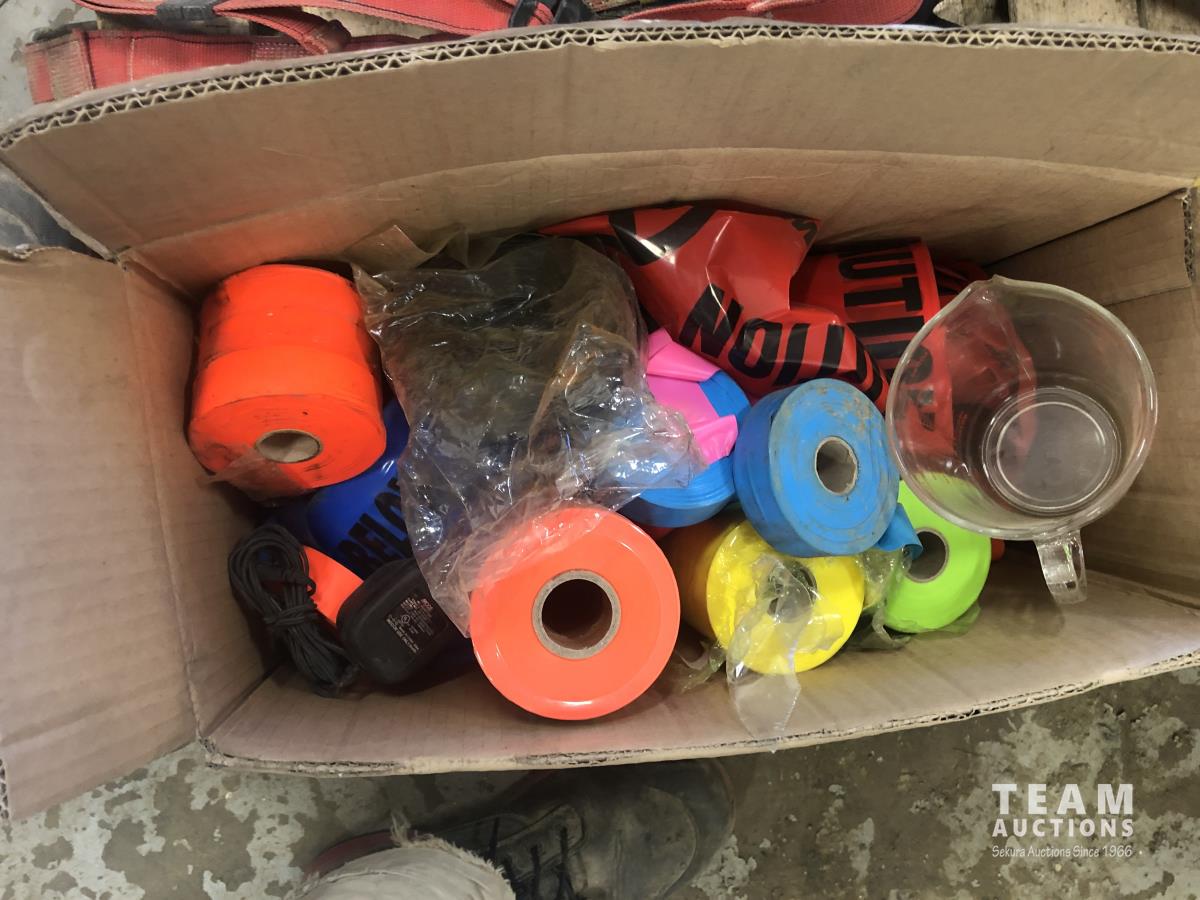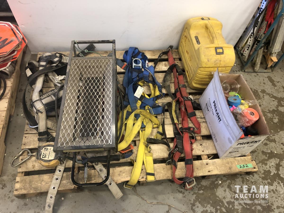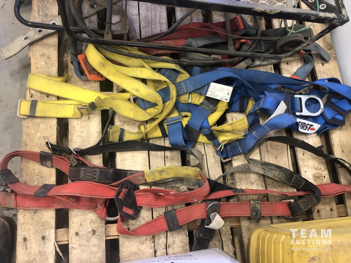 (5) body harnesses, poly container, box of ribbon flagging, retractable lanyard, Catadyne heater