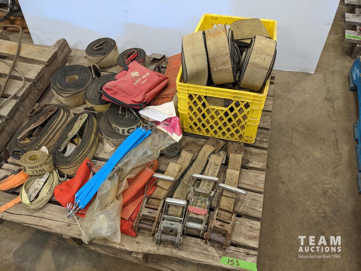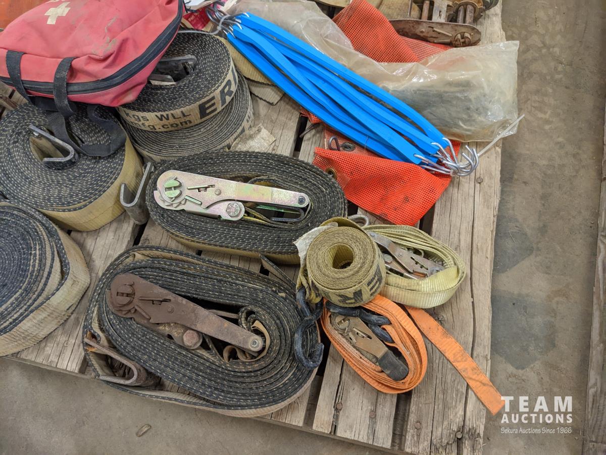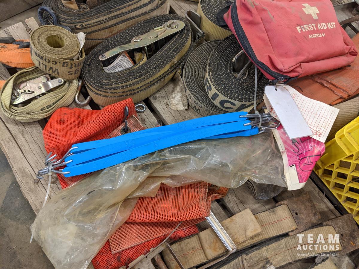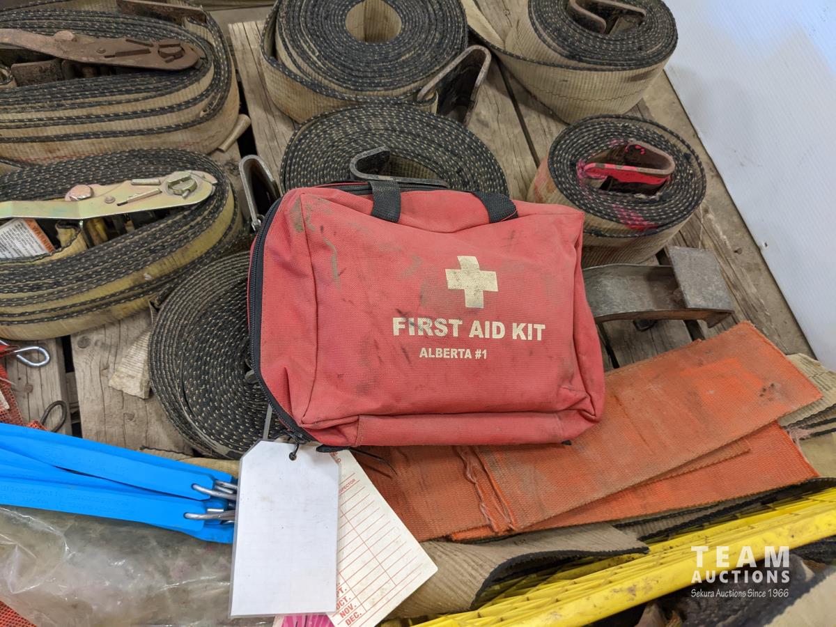 2 inch ratchet straps, load straps, first aid kit, tarp straps, wide load flags