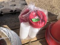 (2) Heat lamps, (1) unused, qty of chicken waterers, feed tray, poly 3 ft X 50 ft chicken wire