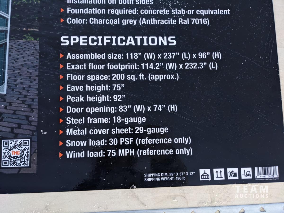 1218 TMG Industrial MS1020A 10 Ft X 20 Ft Metal Shed (Unused)