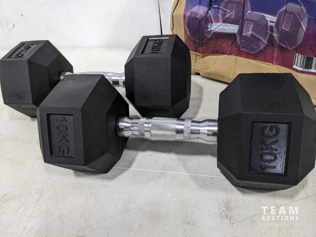 1474 (2) 10 kg Hex Dumbells (Unused)