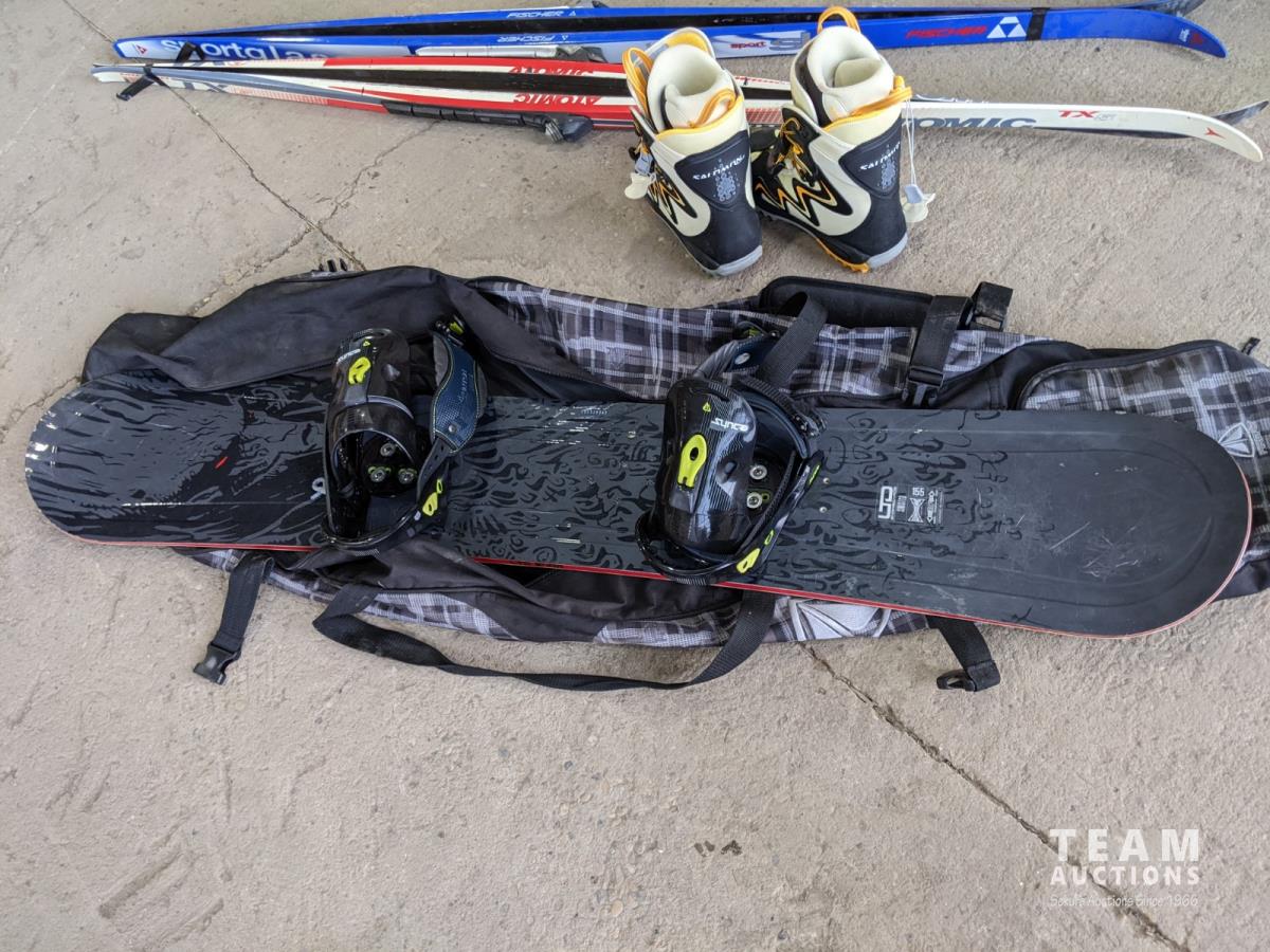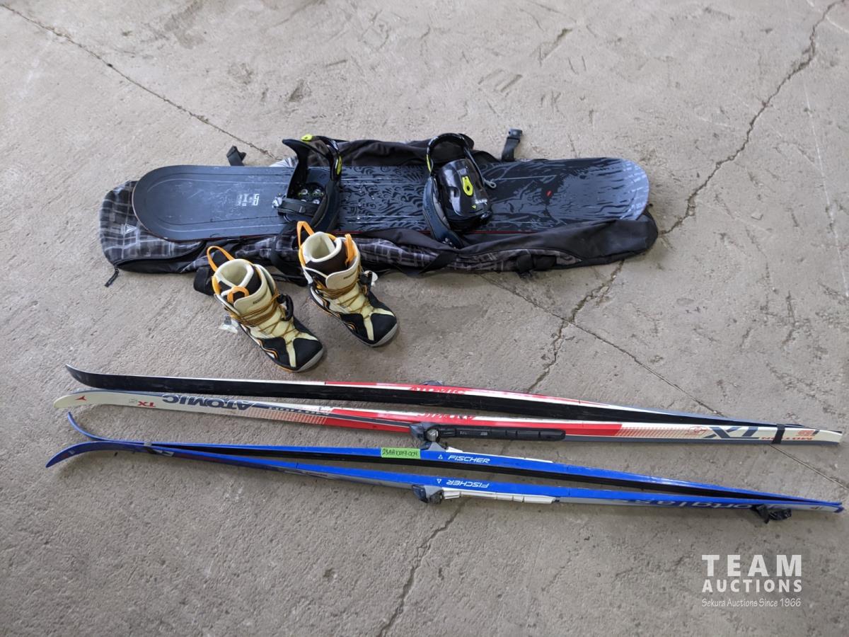 1052 (2) Sets Cross Country Skis, Snowboard Boots, Board and Bag