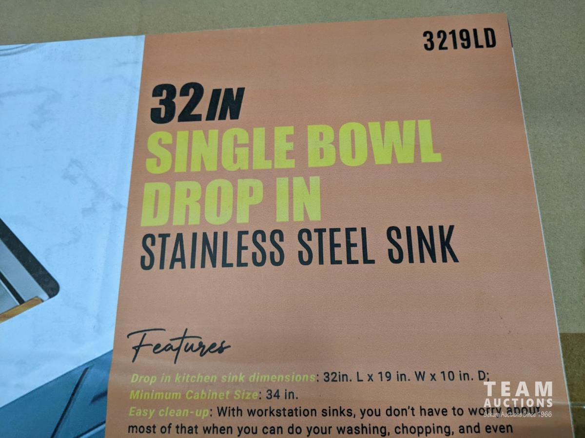 1439 32 Inch Single Bowl Stainless Steel Drop-in Sink (Unused)
