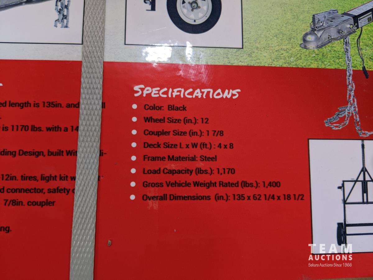 1112 4 Ft X 8 Ft Steel Folding Trailer (Unused)