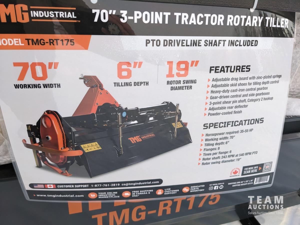 1273 TMG Industrial RT175 70 Inch 3 PT Hitch Rotary Tiller (Unused)