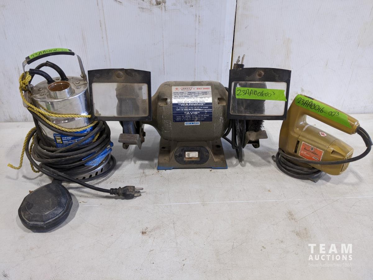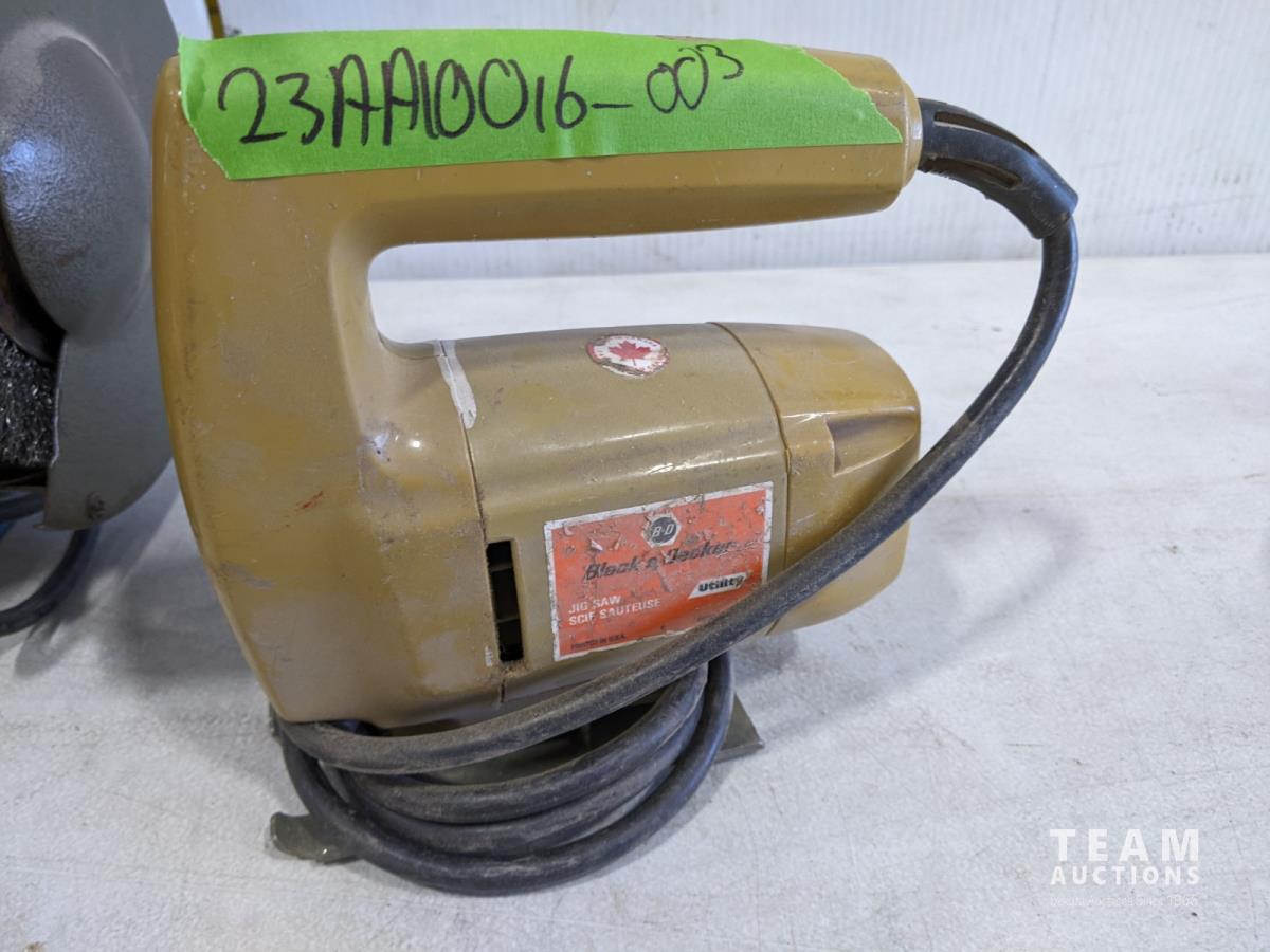 1557 Brico 6 Inch Bench Grinder, Black & Decker Jigsaw, Powerfist Sump Pump