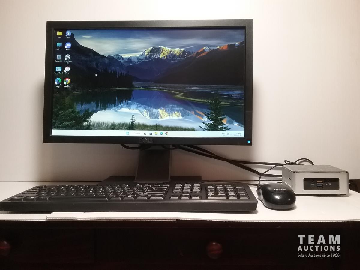 Intel Celeron N3050 Dual Core, new 240 GB SSD, 4 GB RAM, Windows 11 Pro, VGA, HDMI, RJ45, (4) USB 3.0, card reader, AC adapter, 4” x 4” x 2” Comes with used 20” monitor, keyboard and mouse