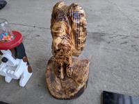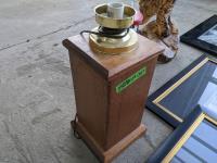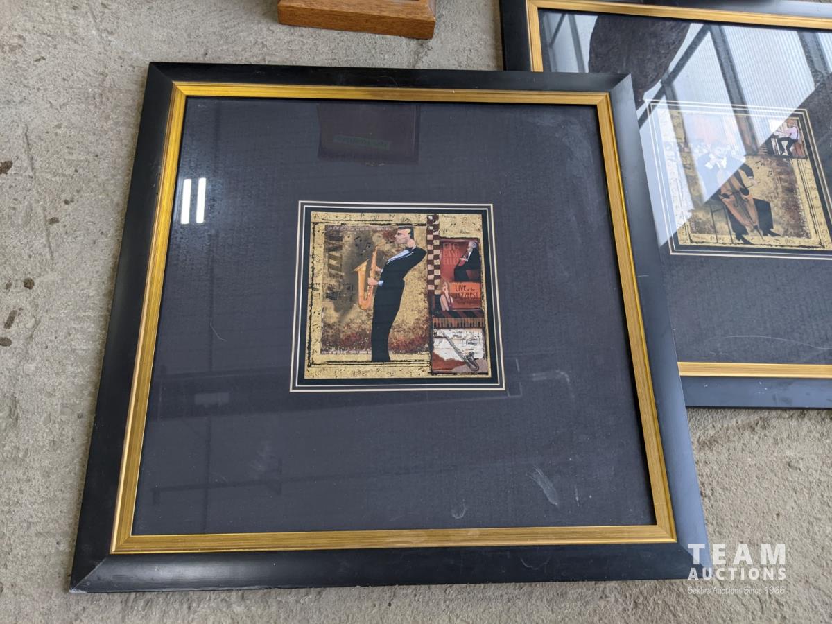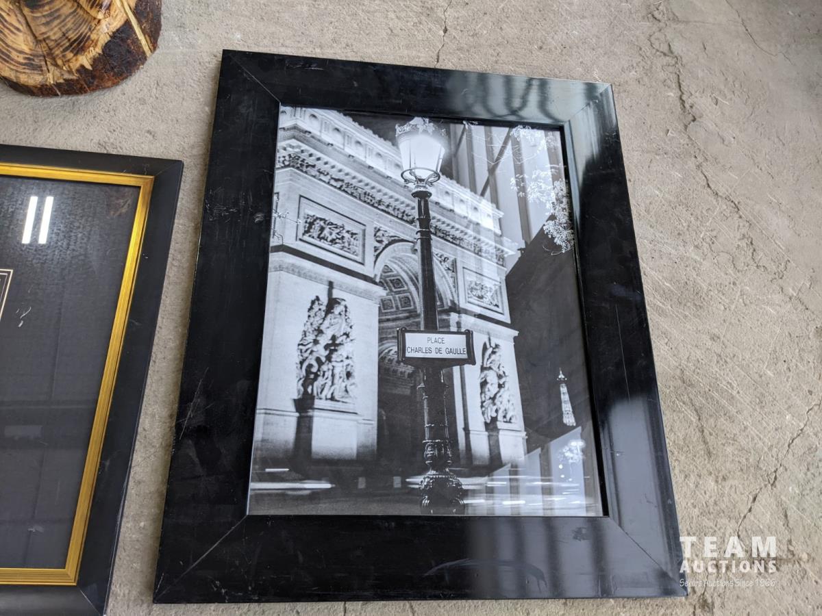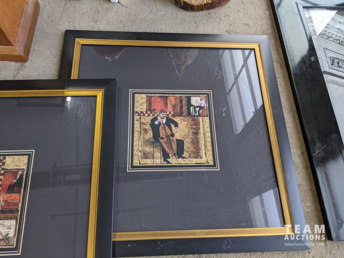 3 pictures, wooden eagle, gumball dispenser, lamp