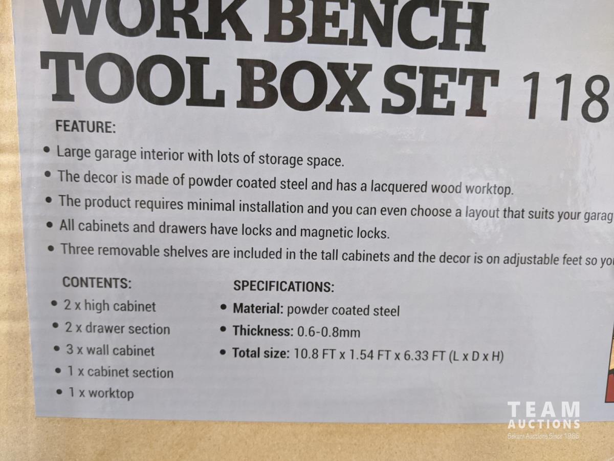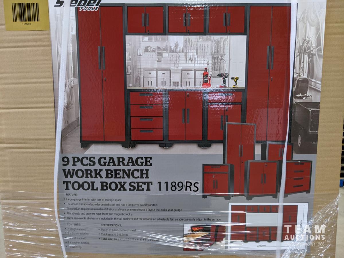 1132 Siebel Tools 9 Piece Garage Workbench/Tool Cabinet (Unused)