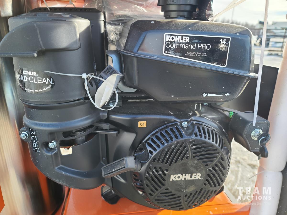 14 HP Kohler engine, 350,700 BTU diesel fired burner, 12v DC ignitor, 85 ft hose, (5) nozzles, 5 gallon poly fuel tank, triplex pump