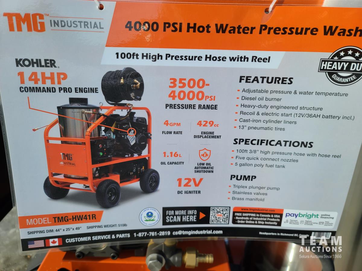 1220 TMG Industrial HW41R Skid Mounted 4000 PSI Hot Water Pressure Washer (Unused)