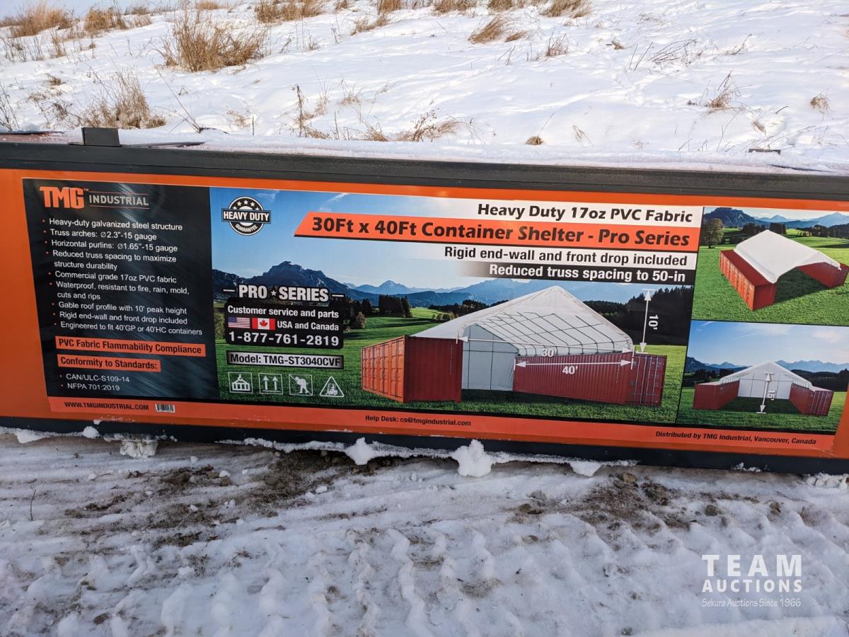 1219 TMG Industrial ST3041CV 30 Ft X 40 Ft Container Shelter w/ Endwall (Unused)