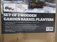 1316 3 Piece Wooden Barrel Garden Planters (Unused)