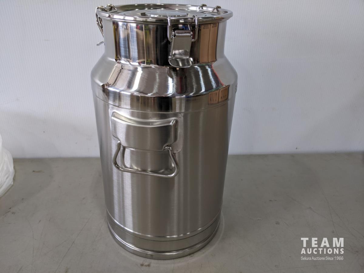 1035 (4) Stainless Steel 20L Milk Jugs with Lids (Unused)