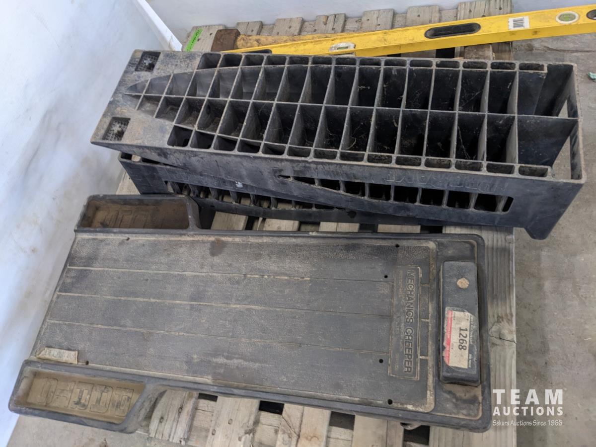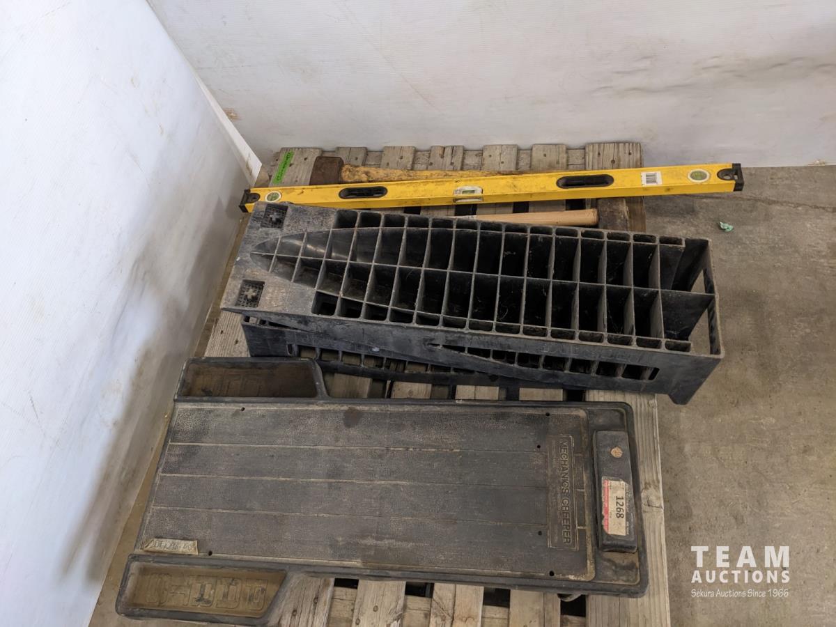 Set of Poly Ramps, 4 ft level, poly creeper, 10 lb and 12 lb sledge hammers