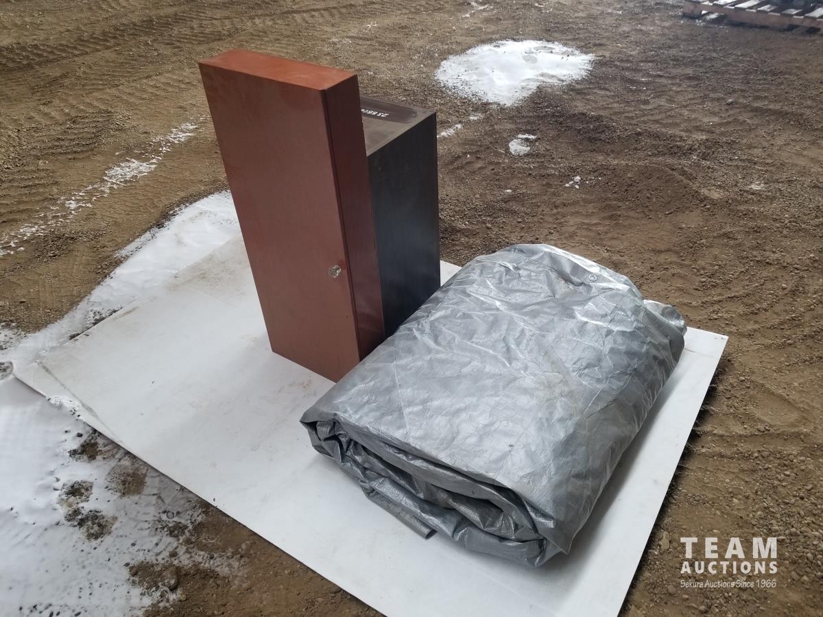10 18 Ft X 14 Ft Tarp & (2) Small Wooden Cabinets